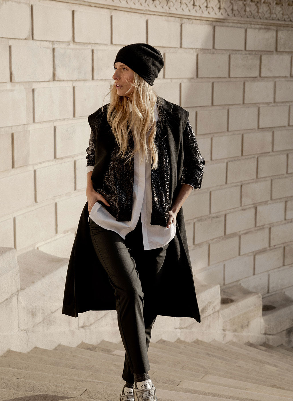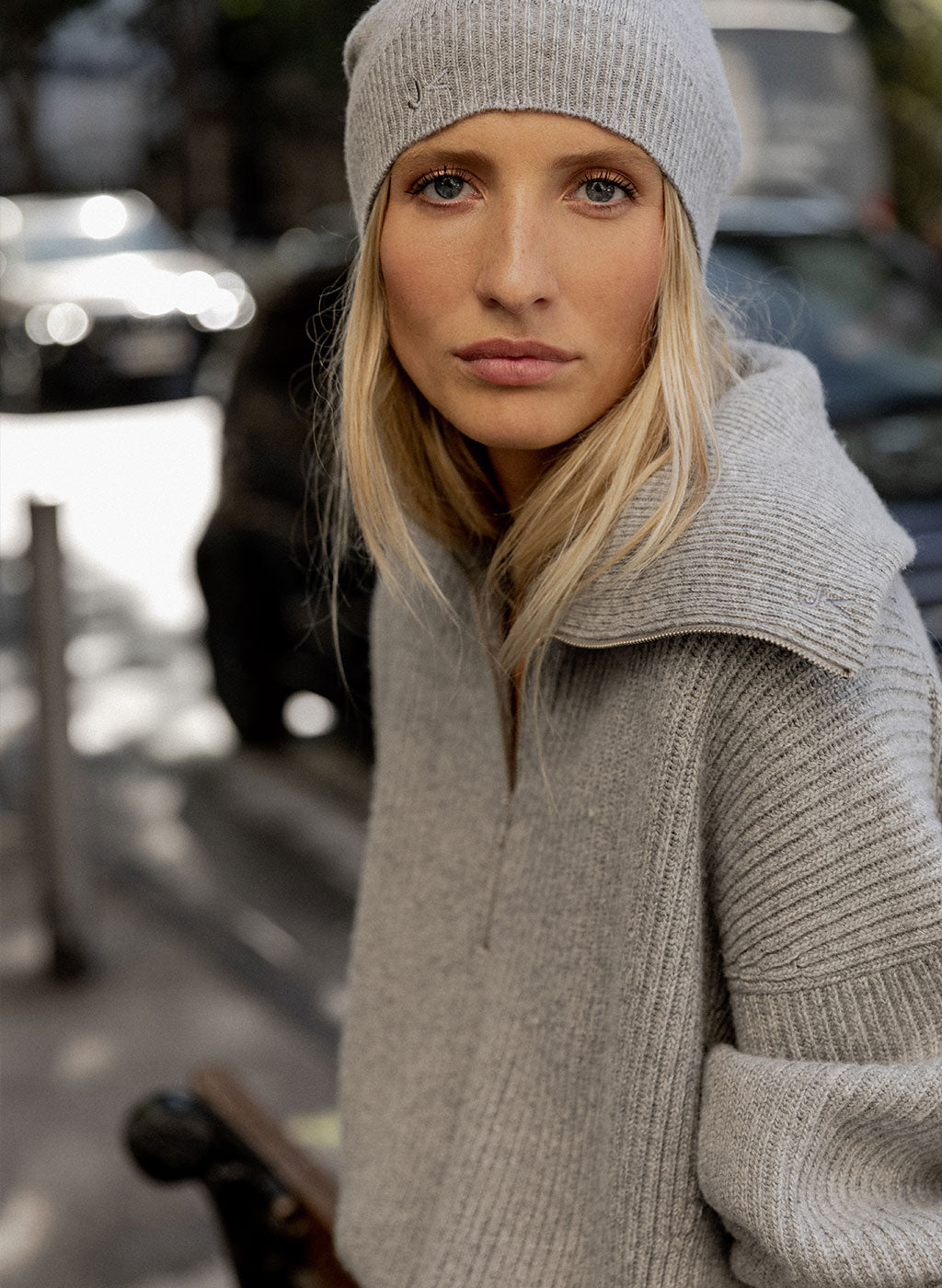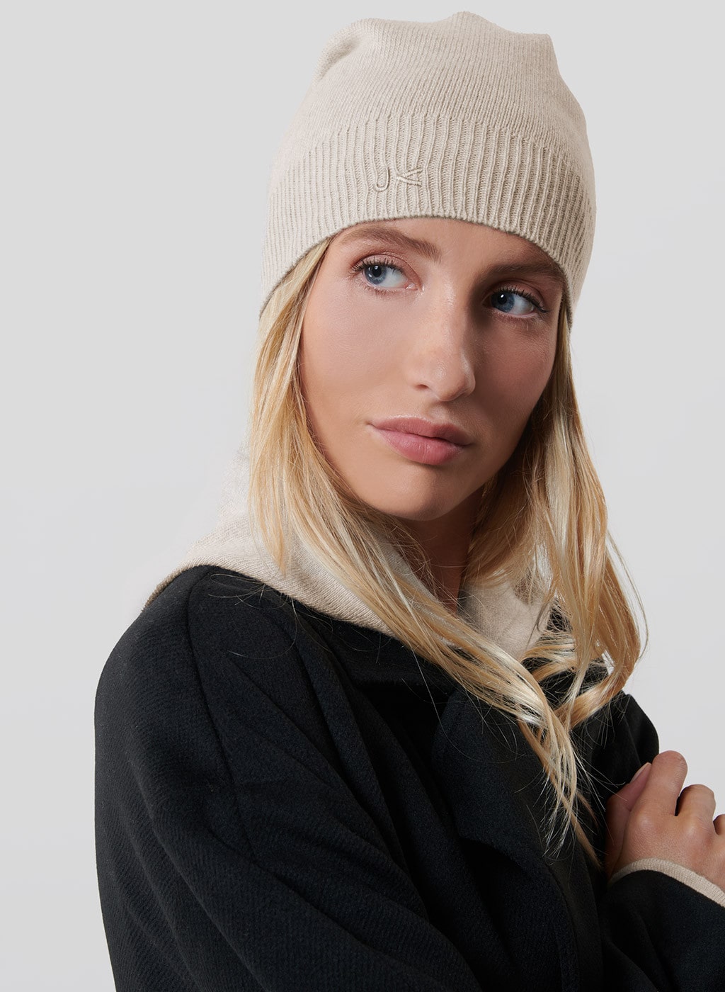Le bonnet Gasty, sans coutures, se distingue par sa couleur beige douce et sa broderie ton sur ton du sigle "JV" sur le côté avant. Sa forme allongée et ses replis à l’arrière lui confèrent des lignes dynamiques, tout en permettant à votre coiffure de rester intacte sans s’aplatir. Conçu pour envelopper la tête sans trop la serrer, ce bonnet combine confort et style. C’est l’accessoire idéal pour un look casual et moderne. Associez-le aux mitaines Gas pour une tenue coordonnée et élégante.