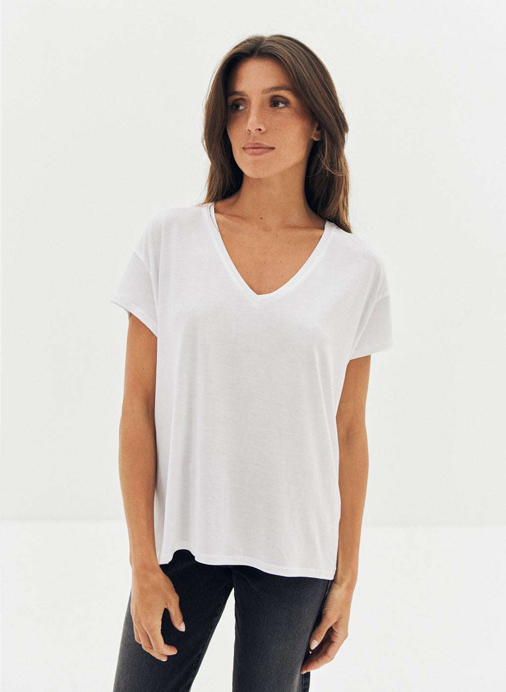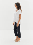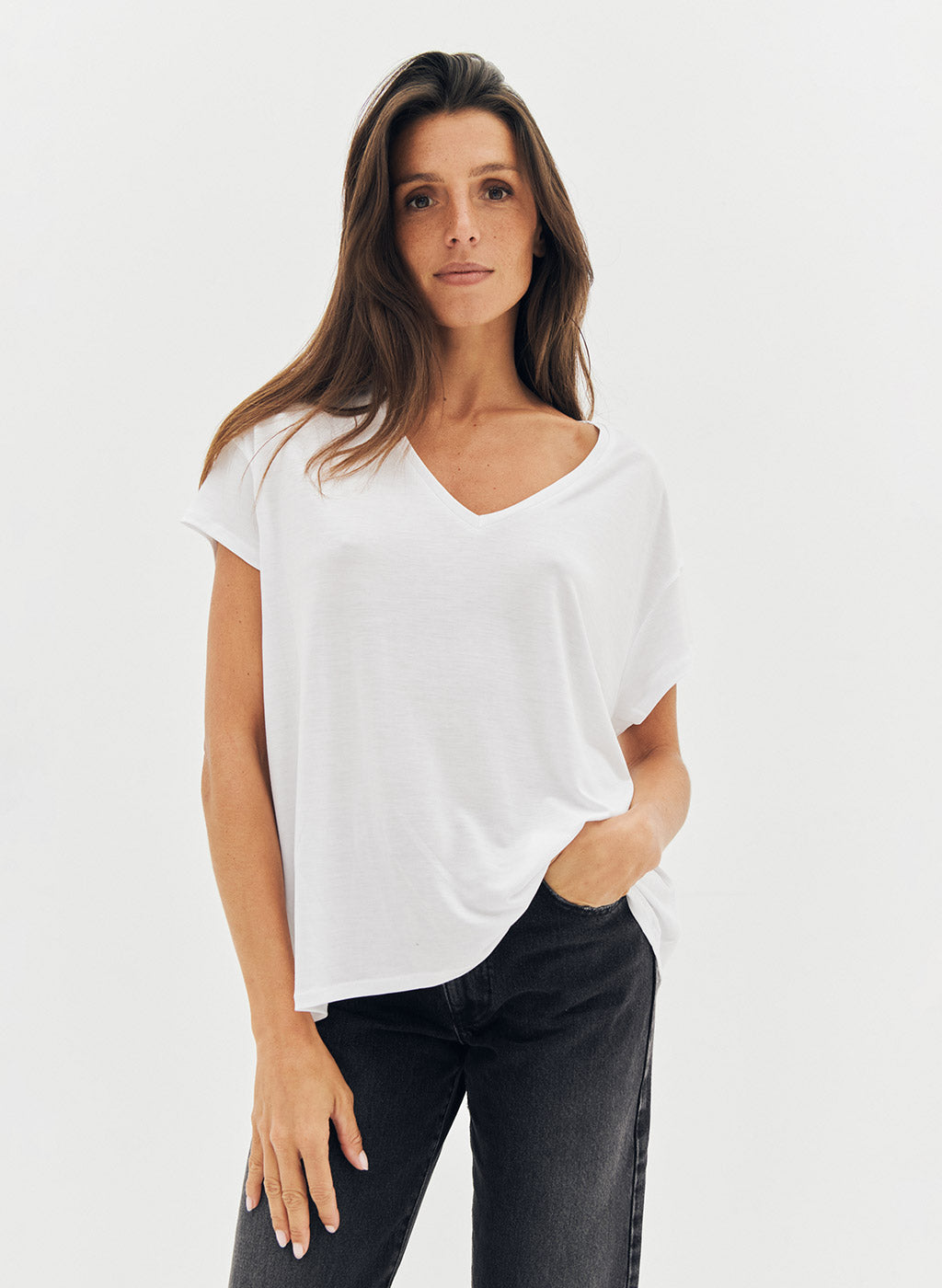 Le tee-shirt Bacha en lyocell blanc est un basique du vestiaire féminin, alliant confort et élégance. Sa coupe ample, sa base droite et son encolure en V apportent une silhouette fluide et décontractée, tandis que la broderie JV ton sur ton à la base signe la pièce avec subtilité. Confectionné en lyocell, ou "soie végétale", il offre douceur, légèreté et résistance. Pourquoi vous l’aimerez : parfait pour un look minimaliste et chic, il se mixe facilement avec toutes vos tenues. ✔ Coupe ample – prenez votre taille habituelle ✔ Lyocell doux et léger, confortable et résistant ✔ Encolure en V et manches courtes ✔ Designé dans le sud de la France ✔ Fabriqué à 100% au Portugal, du sourcing à la confection