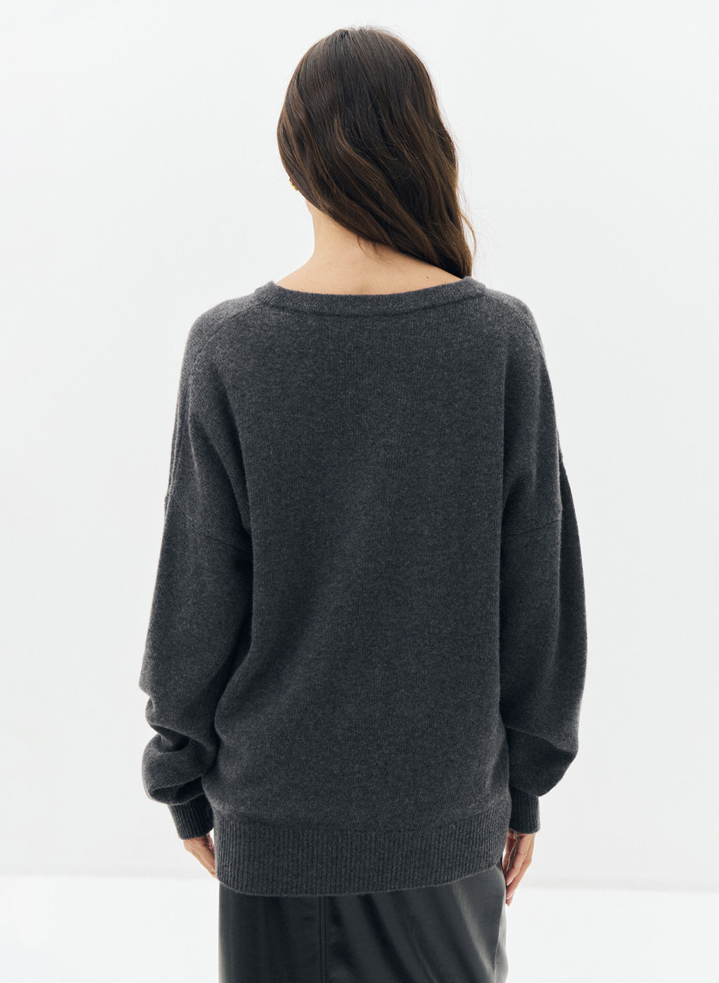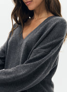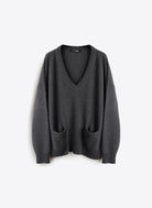 Le pull Misti en laine gris anthracite est un essentiel alliant confort et élégance. Son col en V, ses manches longues et ses deux poches plaquées à l'avant offrent une combinaison parfaite de chaleur et de praticité. Sa coupe loose et sa base droite assurent un look décontracté mais raffiné, idéal pour les journées froides.