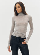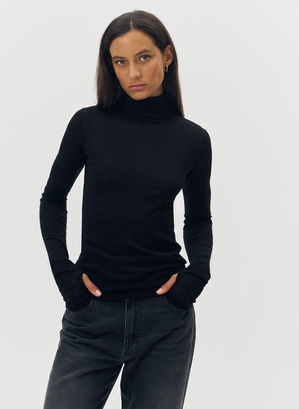 Essentiel de luxe en cachemire d’exception, le pull Meshi gris conjugue chaleur et douceur. Sa coupe droite et son col montant dessinent une allure intemporelle, tandis que les manches longues dotées de passes-pouces ajoutent une touche pratique. Sa base droite signe un style épuré, parfait pour les journées fraîches.