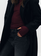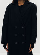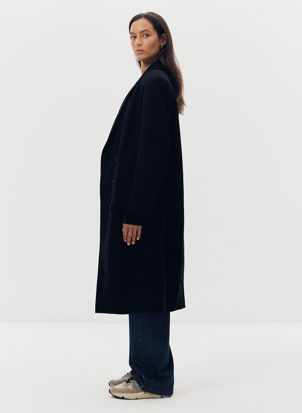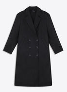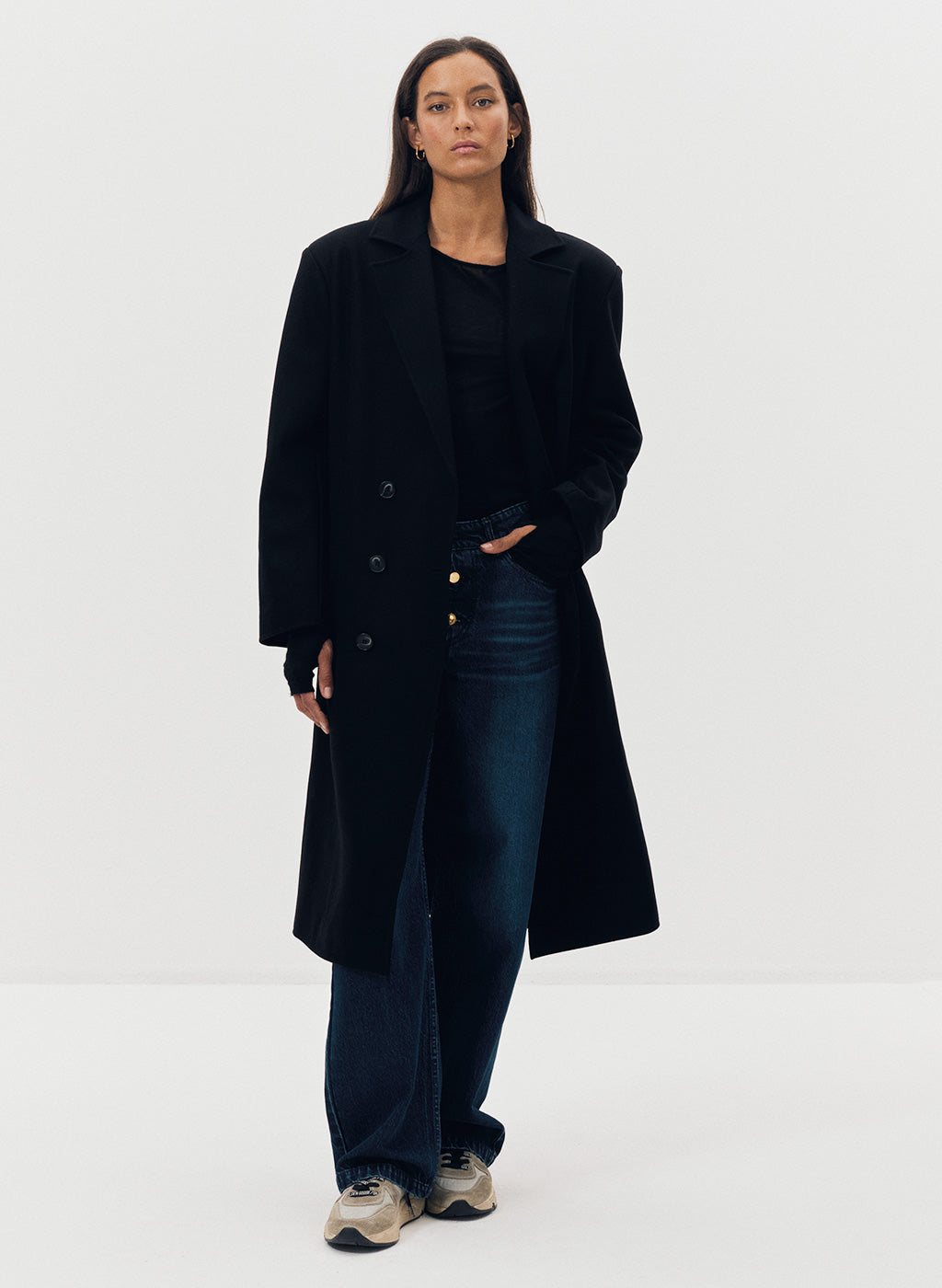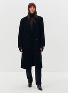 Le maxi caban Mato se distingue par sa coupe oversize et son grand col à revers qui encadre le visage avec élégance. Son double boutonnage noir et doré apporte une note sophistiquée, tandis que la carrure structurée, épaules carrées et épaulettes, dessine une silhouette affirmée. Deux poches de ville pratiques et une fente au dos offrent confort et liberté de mouvement. Non doublé, il révèle des finitions intérieures en biais, gage d’un travail soigné.