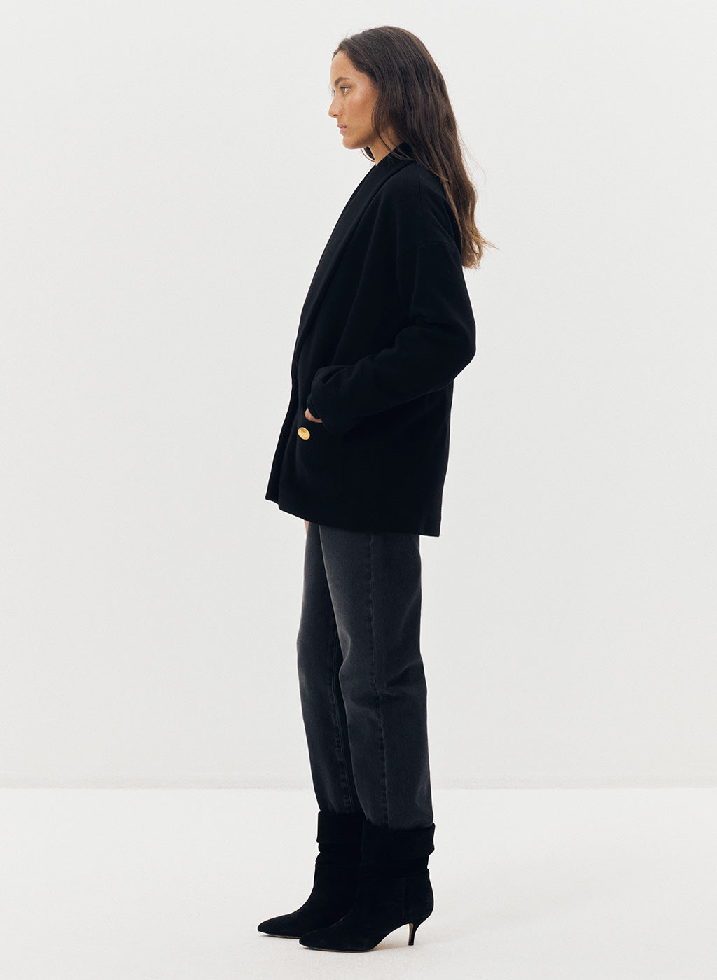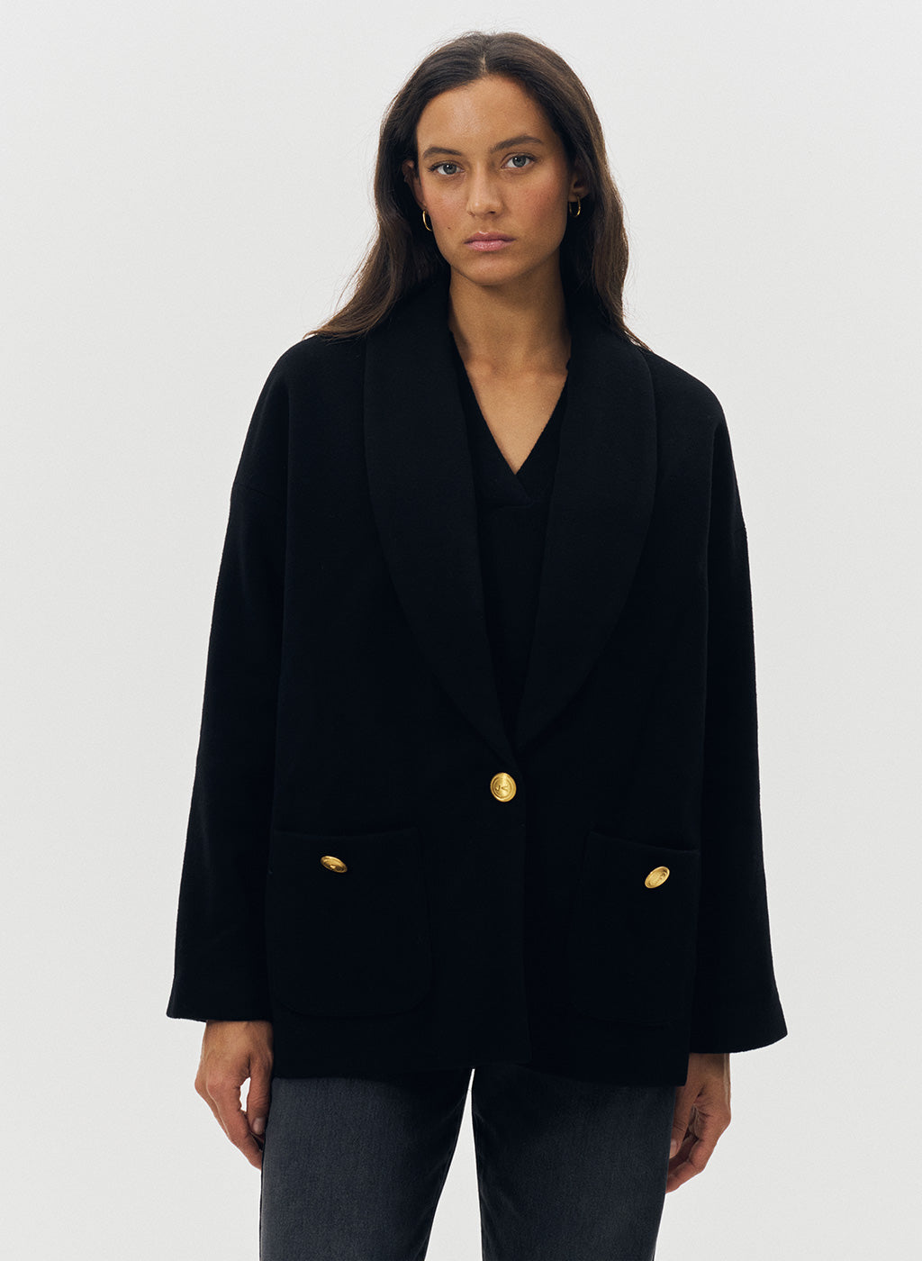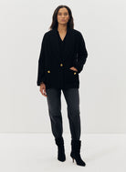 Manteau Malbe noir en laine et cachemire