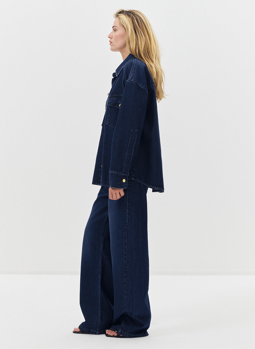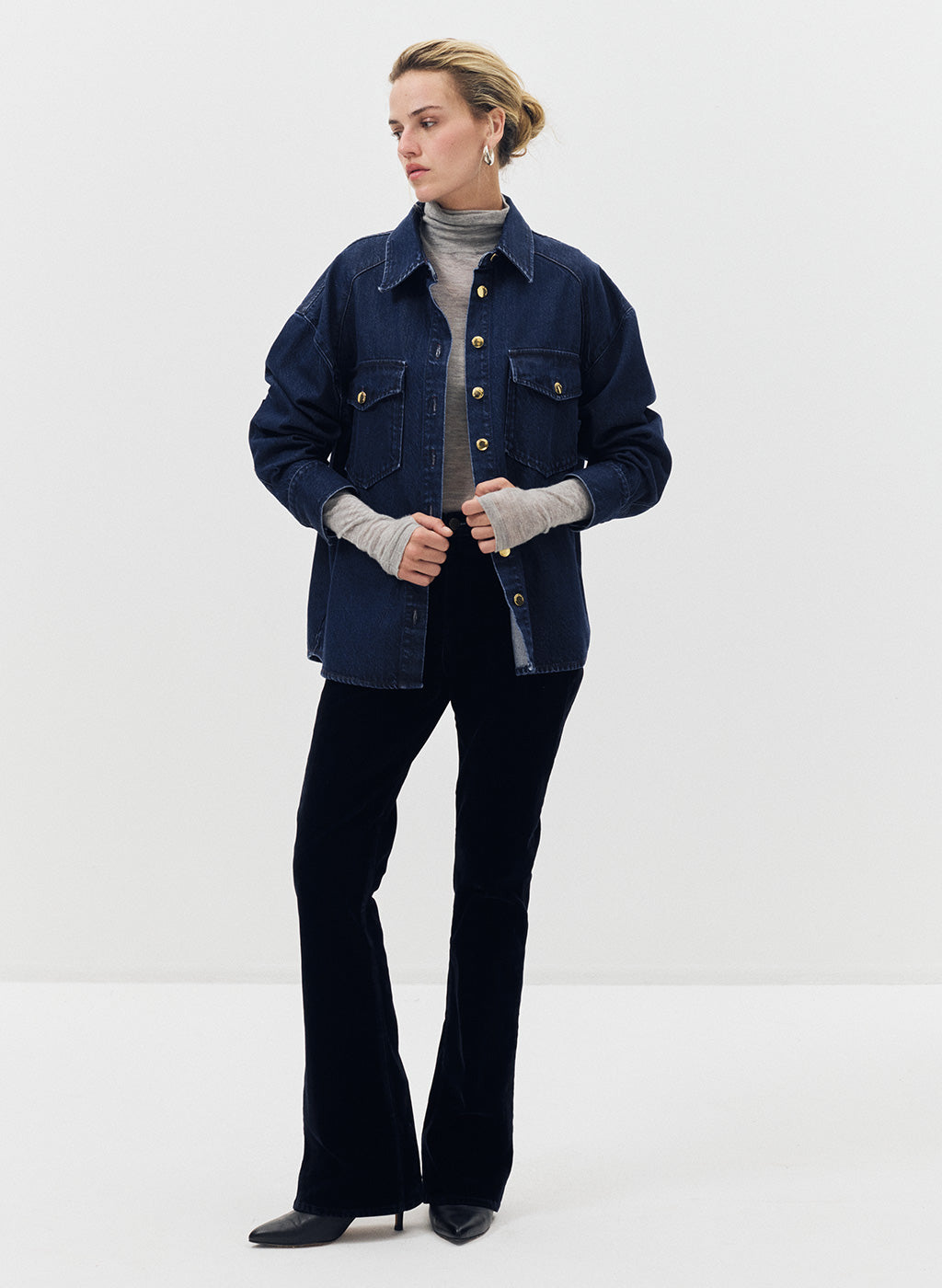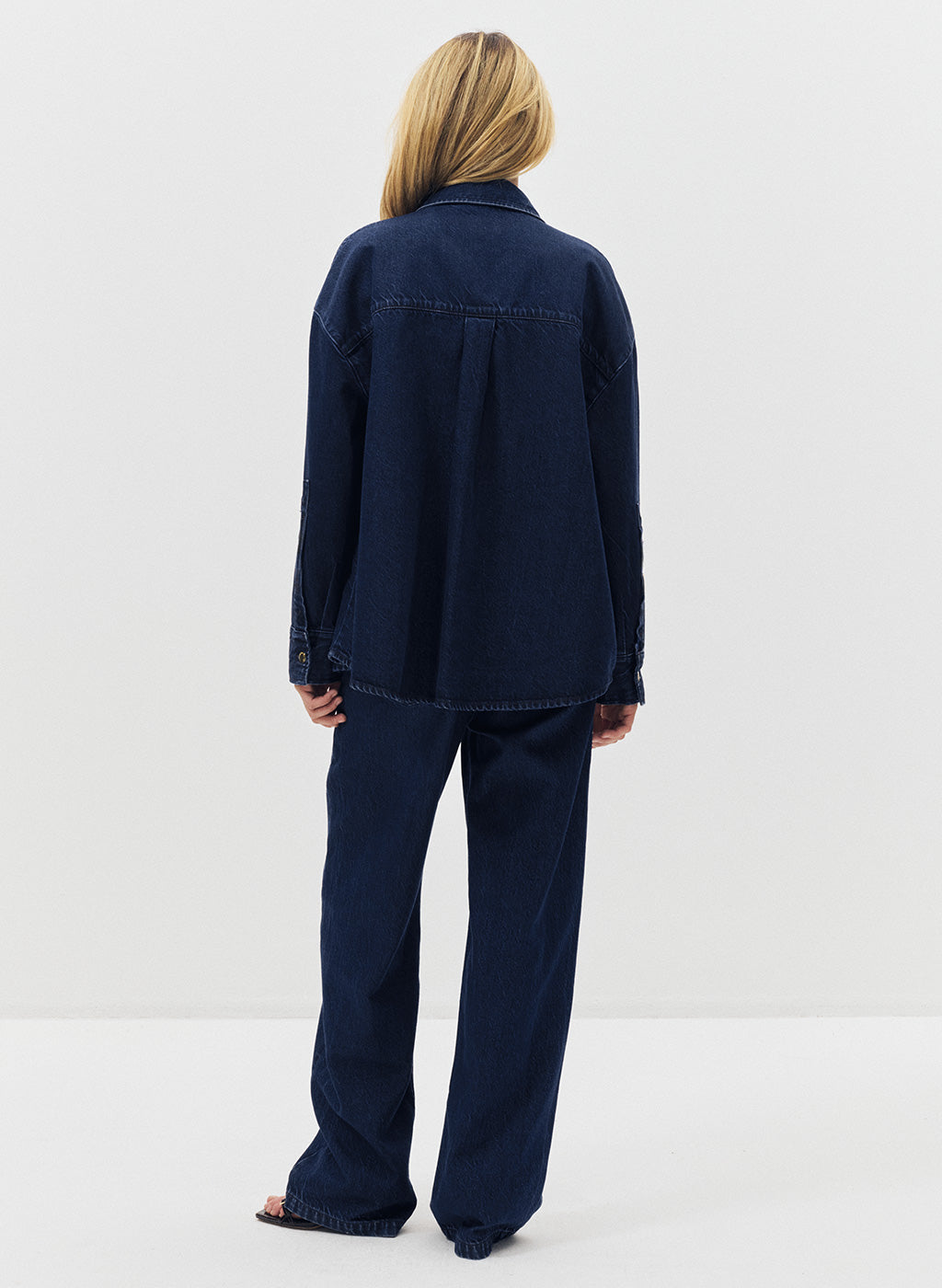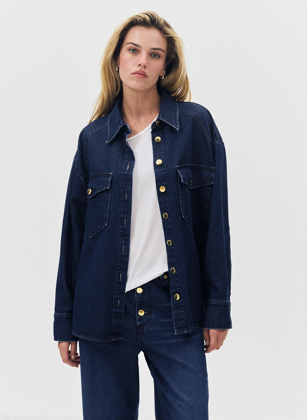 La chemise Nala, confectionnée en denim brut bleu, revisite le classique avec élégance. Les boutons dorés siglés JV, les larges ouvertures aux manches et la découpe soignée au dos avec soufflet offrent aisance et mouvement. Les poches poitrine et les finitions contrastantes complètent ce modèle pratique et raffiné.