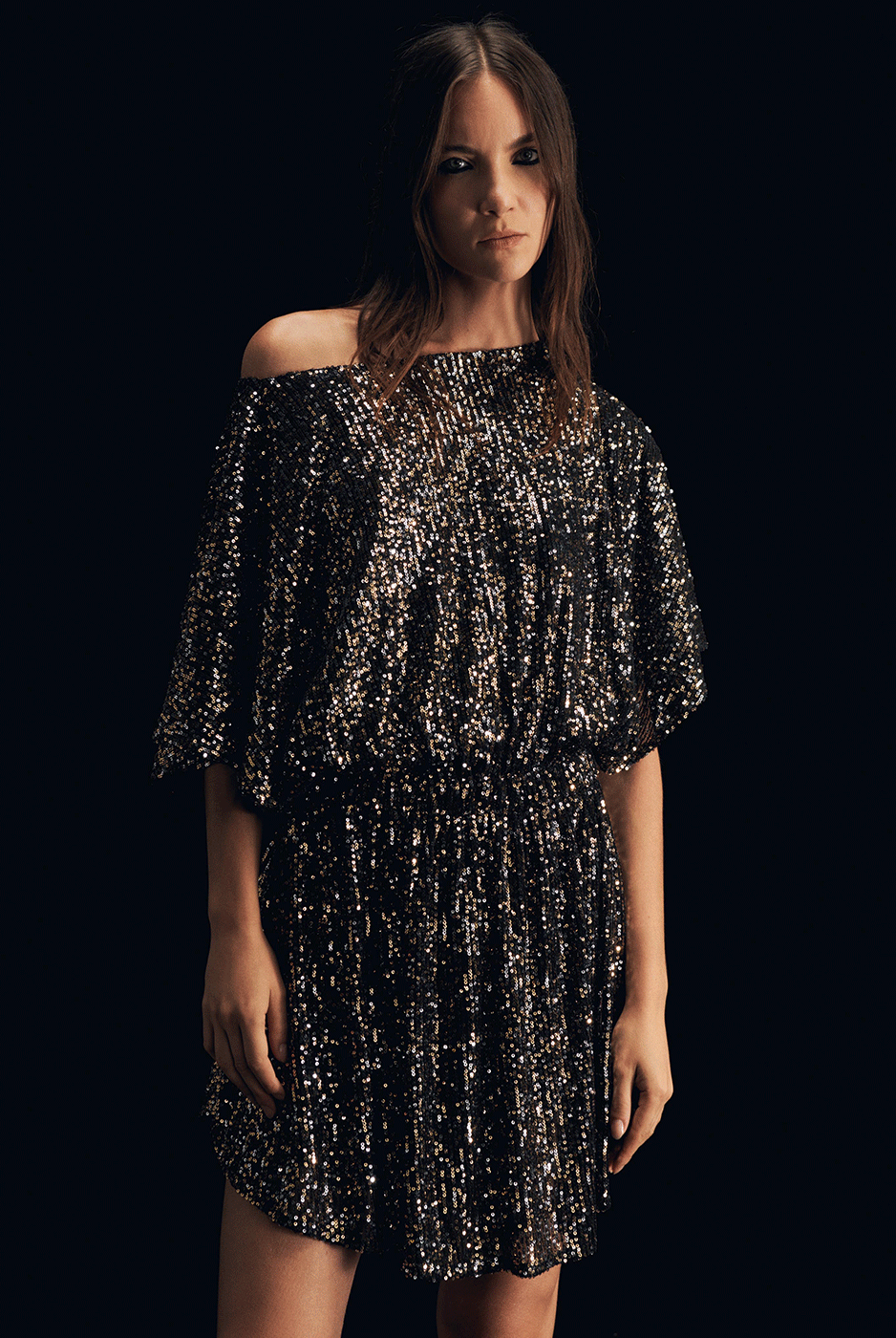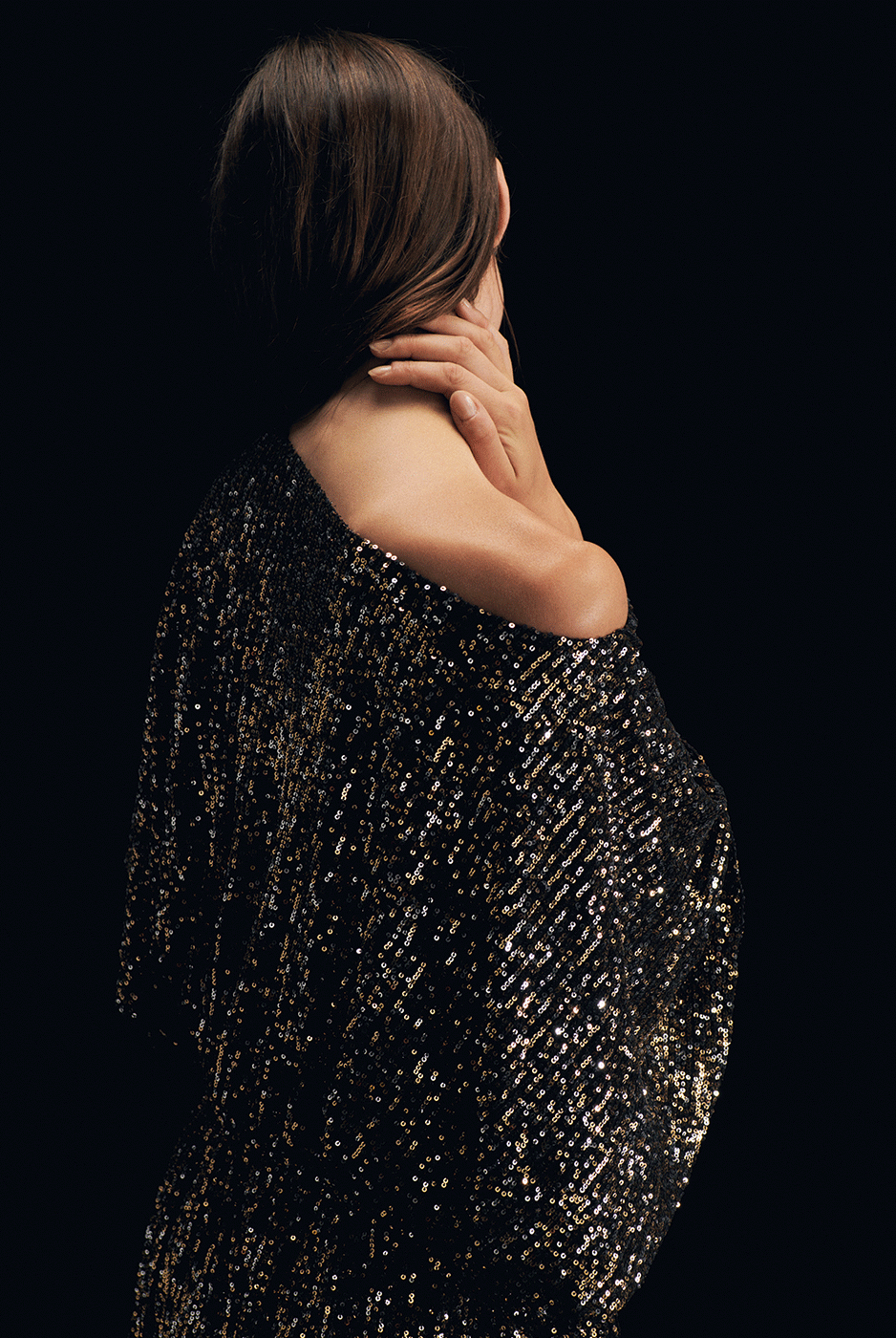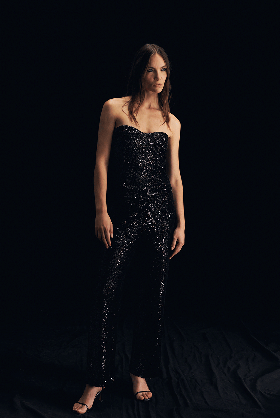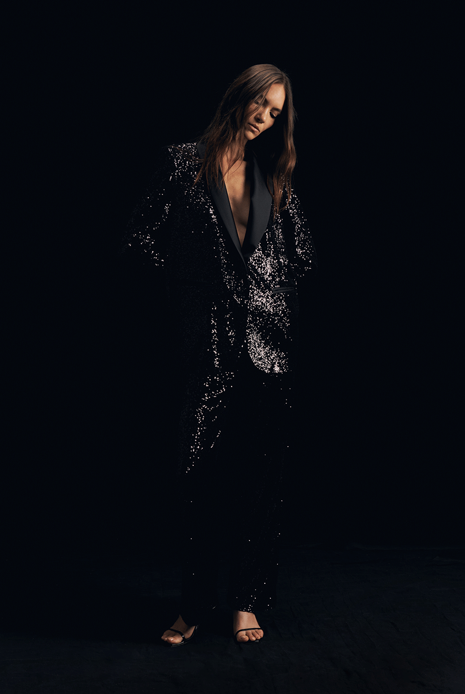 Un élan d’esthétisme futuriste agrémenté de rétro-chic. Les pièces fusionnent habilement entre coupes incontournables et éléments plus contemporains, dans un minimalisme absolu. Un équilibre parfait se dessine. Allures sculpturales, ornements en sequins, le tout teinté uniquement de noir et de doré. Let’s celebrate !