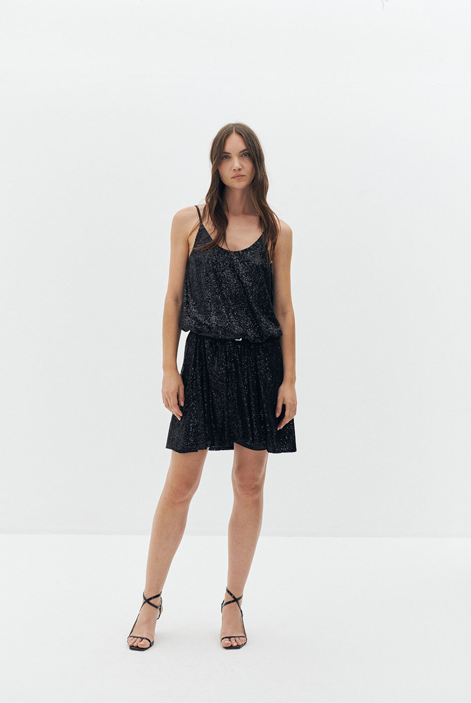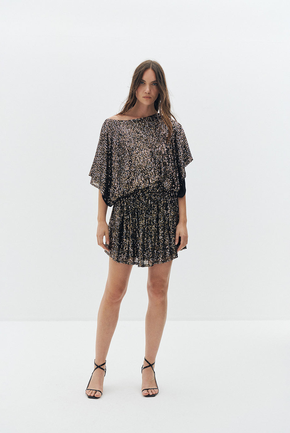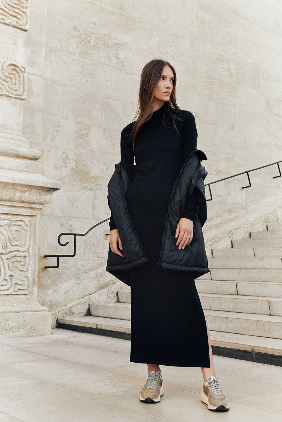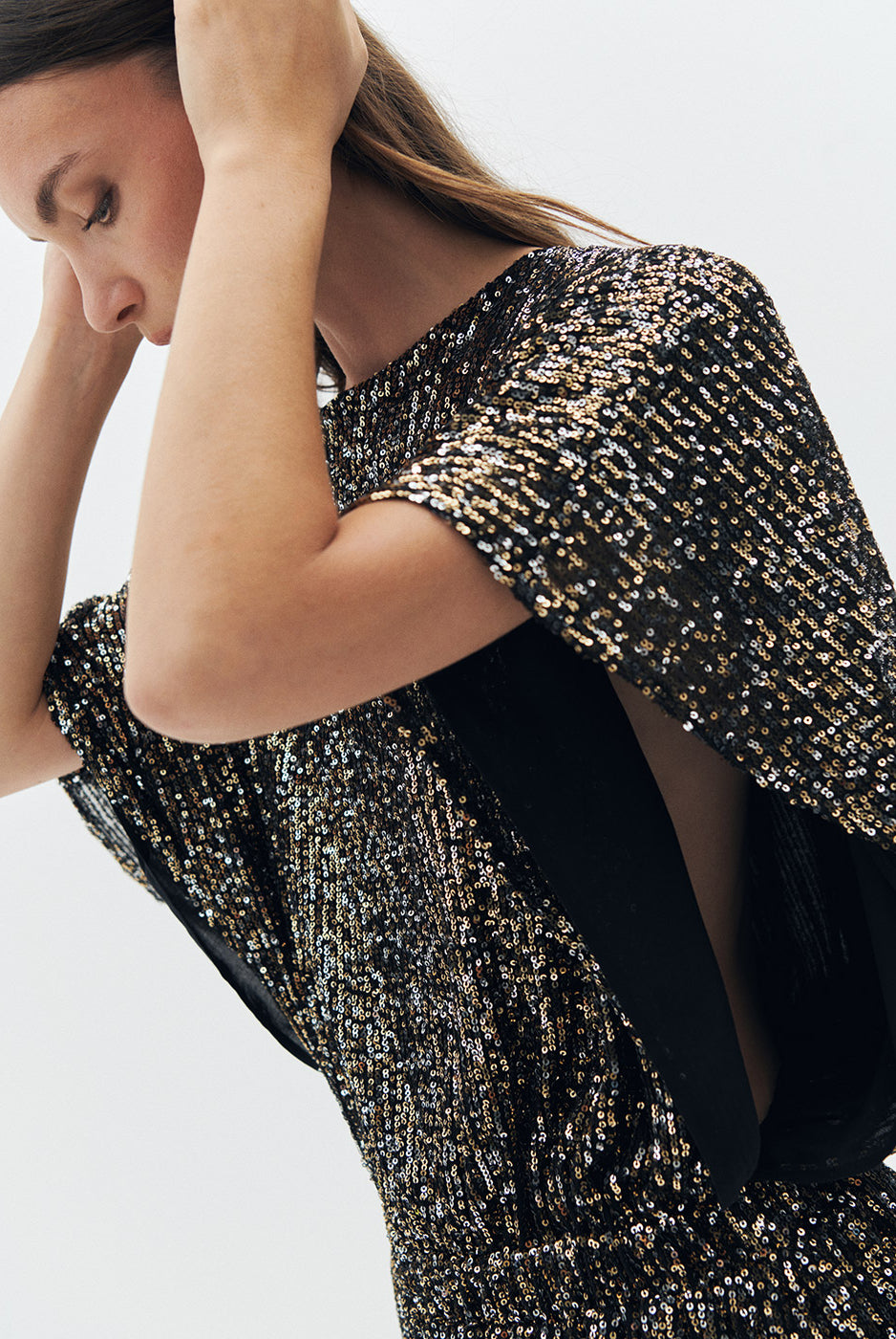 Un élan d’esthétisme futuriste agrémenté de rétro-chic. Les pièces fusionnent habilement entre coupes incontournables et éléments plus contemporains, dans un minimalisme absolu. Un équilibre parfait se dessine. Allures sculpturales, ornements en sequins, le tout teinté uniquement de noir et de doré. Let’s celebrate !