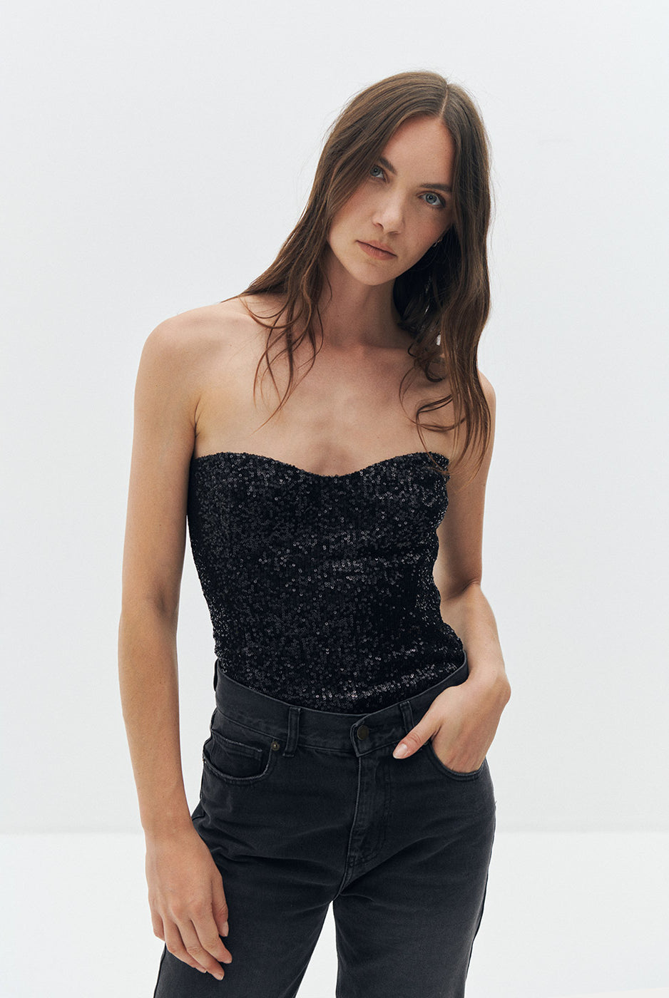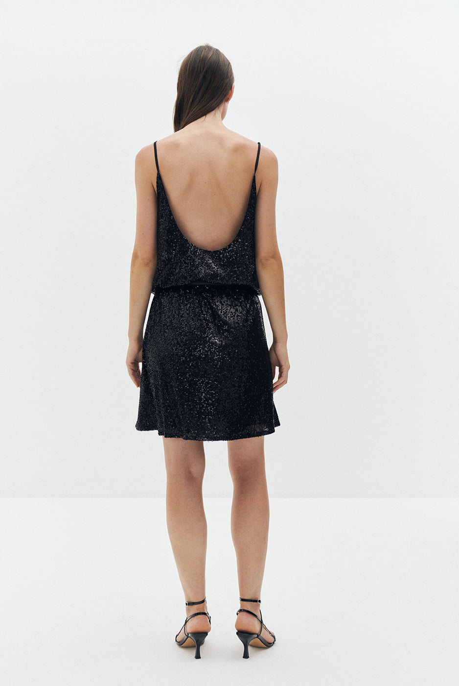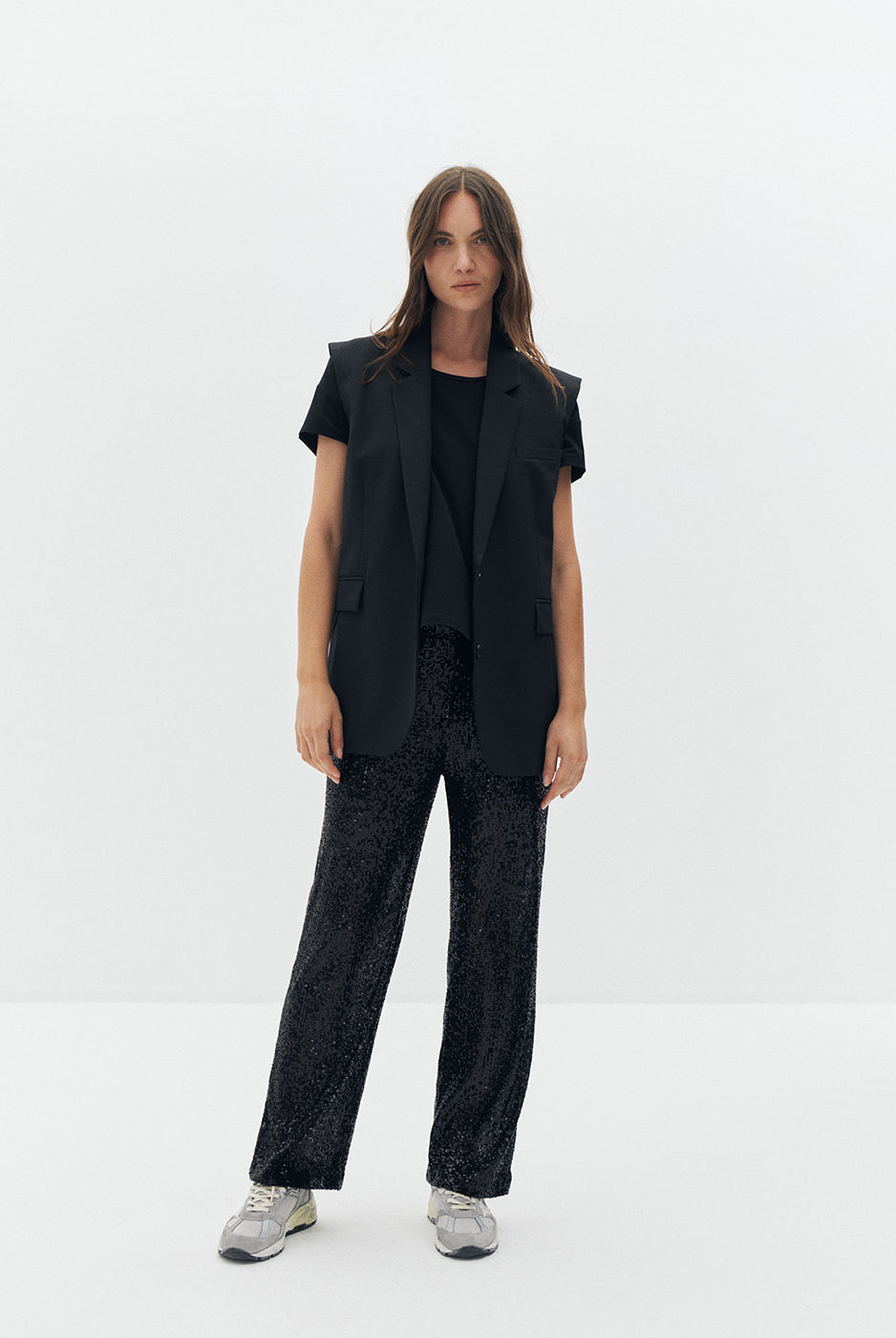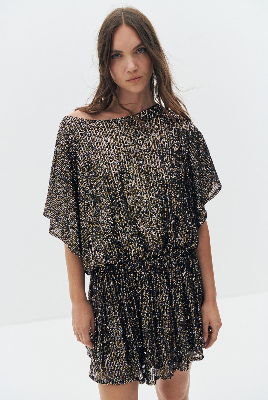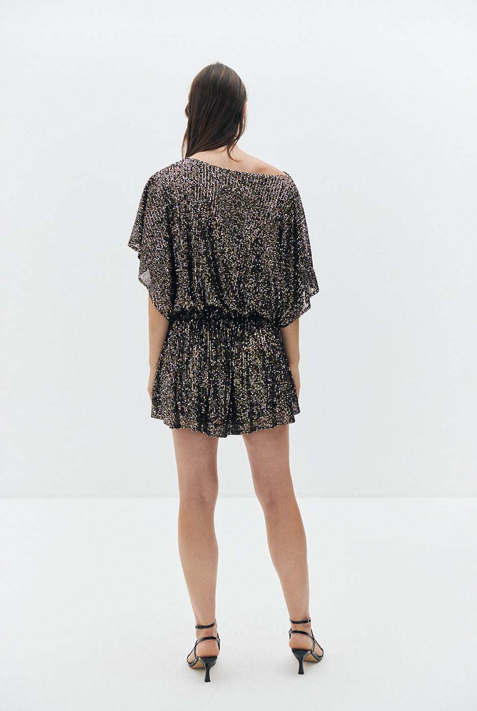 Un élan d’esthétisme futuriste agrémenté de rétro-chic. Les pièces fusionnent habilement entre coupes incontournables et éléments plus contemporains, dans un minimalisme absolu. Un équilibre parfait se dessine. Allures sculpturales, ornements en sequins, le tout teinté uniquement de noir et de doré. Let’s celebrate !