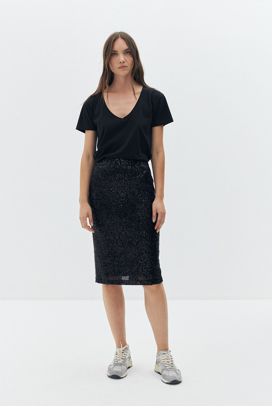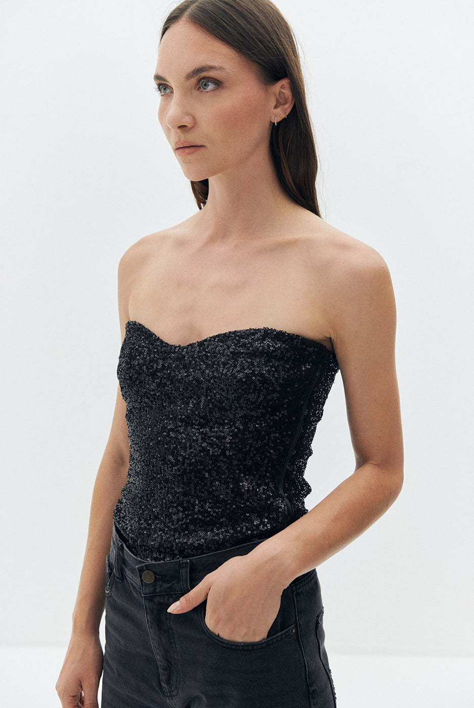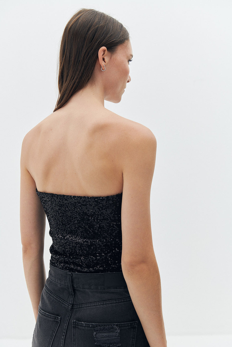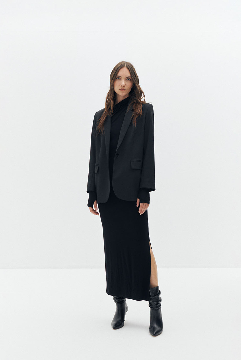 Un élan d’esthétisme futuriste agrémenté de rétro-chic. Les pièces fusionnent habilement entre coupes incontournables et éléments plus contemporains, dans un minimalisme absolu. Un équilibre parfait se dessine. Allures sculpturales, ornements en sequins, le tout teinté uniquement de noir et de doré. Let’s celebrate !