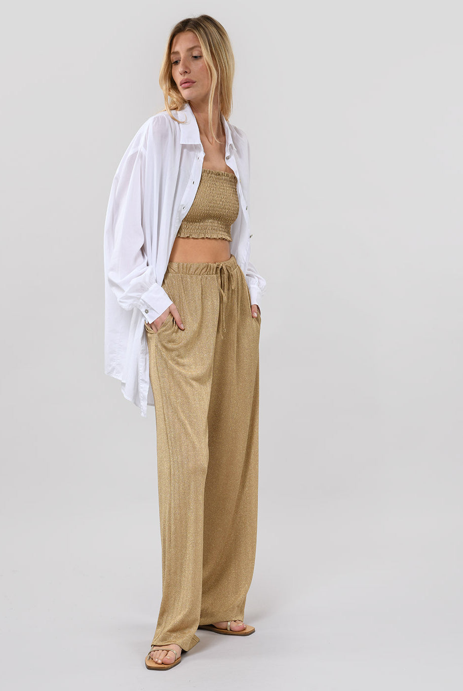 Des allures décontractées évoquant le sable chaud, les belles et éternelles journées estivales, voici le dernier drop qui nous transporte en vacances. Cinq nouvelles pièces légères et décontractées accompagnent cette capsule plein été : du doré irisé, des robes, des bustiers, des pantalons agréables et féminins… À porter sans modération !