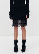 La jupe Oriane allie dentelle stretch florale et coupe droite moderne. Sa taille élastiquée garantit un confort optimal, tandis que le jupon en jersey intégré assure un tombé parfait. La découpe asymétrique et le bord en écaille apportent une note contemporaine et élégante. Une pièce sophistiquée et facile à porter.