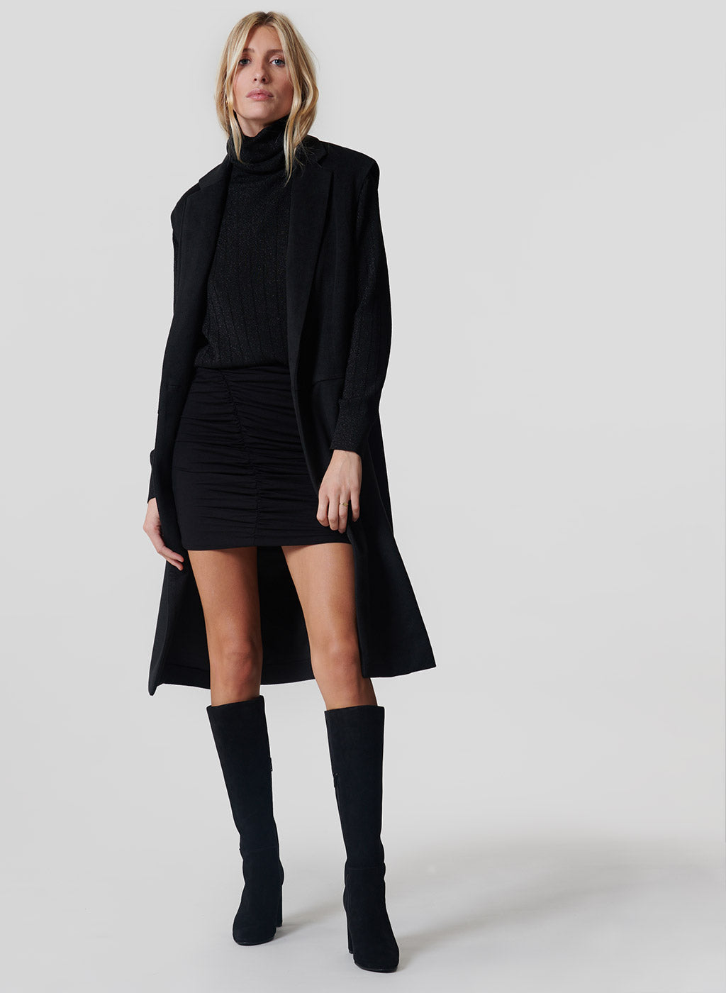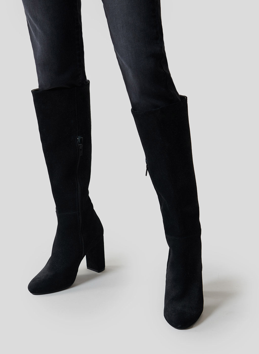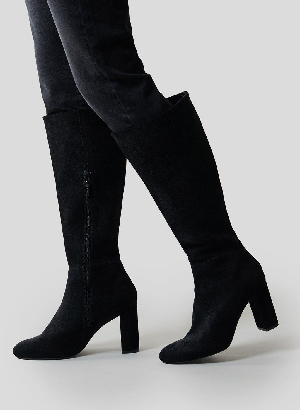 Les bottes Bun 85 allient élégance intemporelle et féminité affirmée. Confectionnées en cuir suédé noir, elles affichent un bout arrondi et un talon bloc de 8,5 cm pour un maintien optimal tout au long de la journée. Leur design a été pensé pour les femmes modernes, à la fois sûres d’elles, raffinées et sensuelles. La tige haute est subtilement signée d’un monogramme "JV" brodé ton sur ton, détail identitaire discret mais sophistiqué. Un zip discret à l’intérieur permet un enfilage facile. À l’intérieur, la doublure et la semelle en cuir assurent un chaussant confortable et durable.