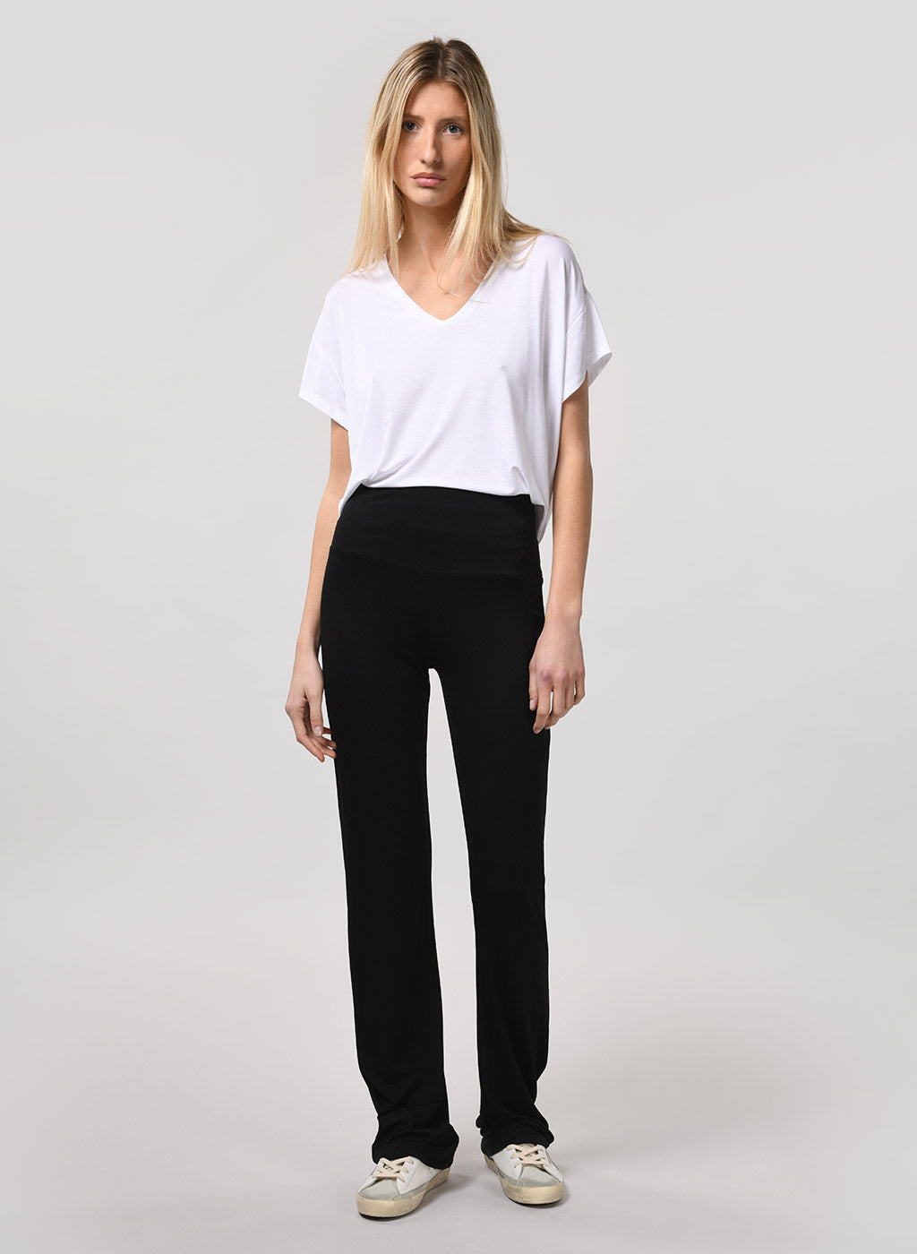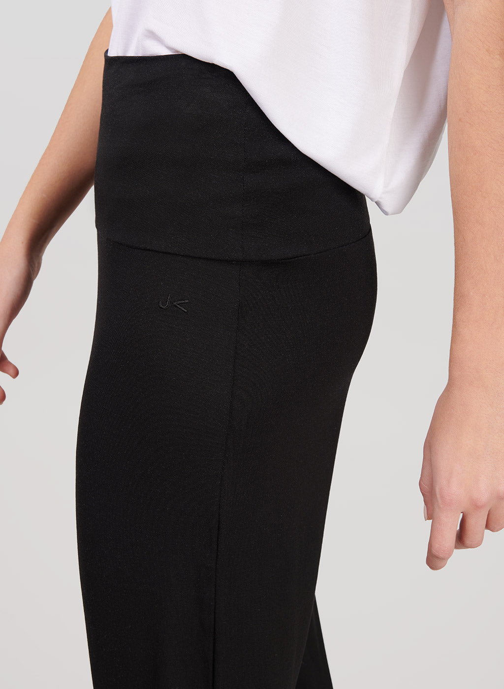 Le pantalon Jade est une pièce essentielle alliant confort et élégance. Confectionné en jersey de lyocell stretch, il offre un toucher doux, une grande élasticité et un effet seconde peau qui sublime la silhouette tout en garantissant une liberté de mouvement optimale. Sa taille haute vient souligner la taille avec finesse, tandis que sa coupe flare, évasée délicatement du genou jusqu’à l’ourlet, apporte une fluidité et une élégance naturelle à chaque pas. Inspiré des leggings et des bas de yoga, ce pantalon fusionne style et praticité, idéal pour les journées où confort rime avec sophistication. Le détail subtil de la broderie « JV » ton sur ton sur le devant gauche ajoute une signature discrète et raffinée à ce modèle incontournable.