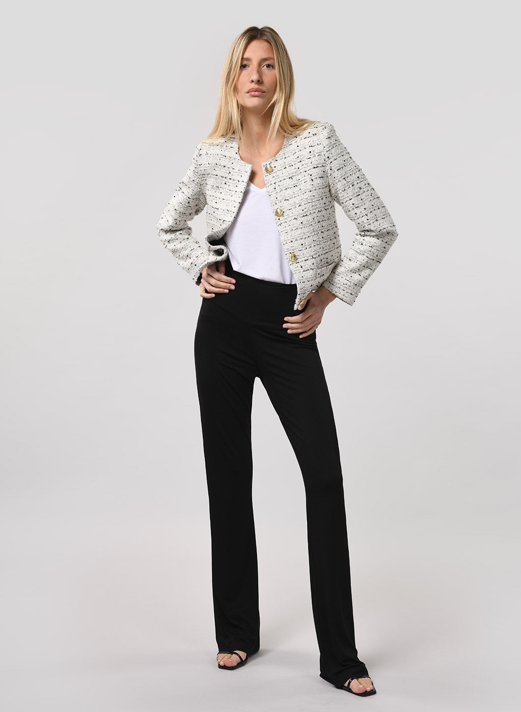 Le pantalon Jade présente une coupe ajustée et évasée. Prenez votre taille habituelle.