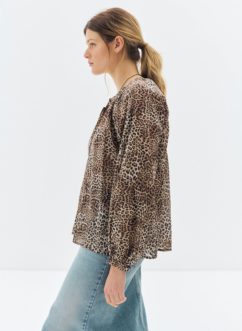 La blouse Nora est taillée pour une coupe ample et courte. Prenez votre taille habituelle.