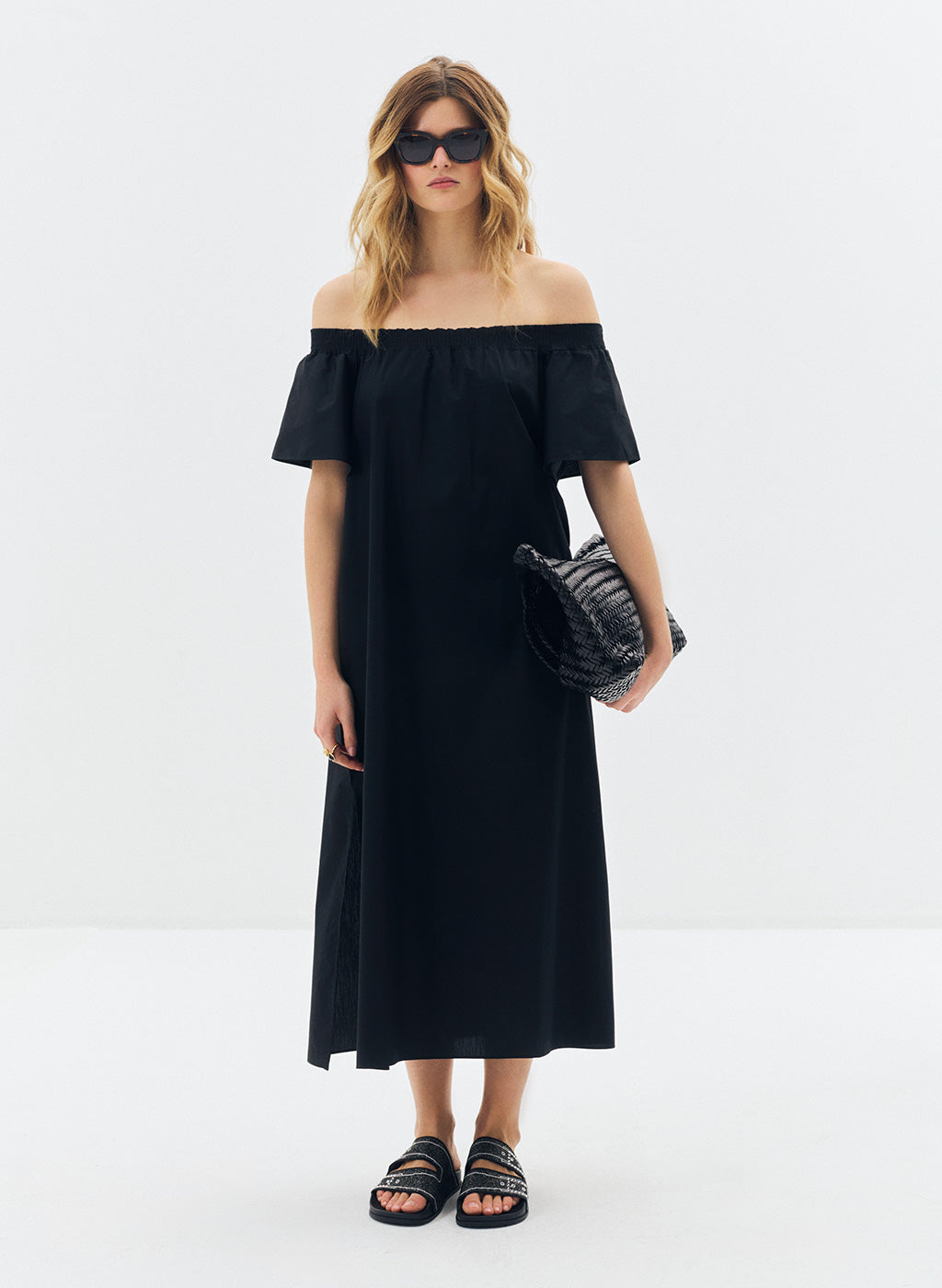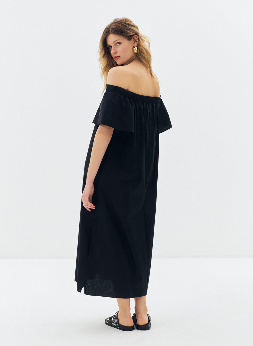 Robe longue Joy noire en popeline de coton