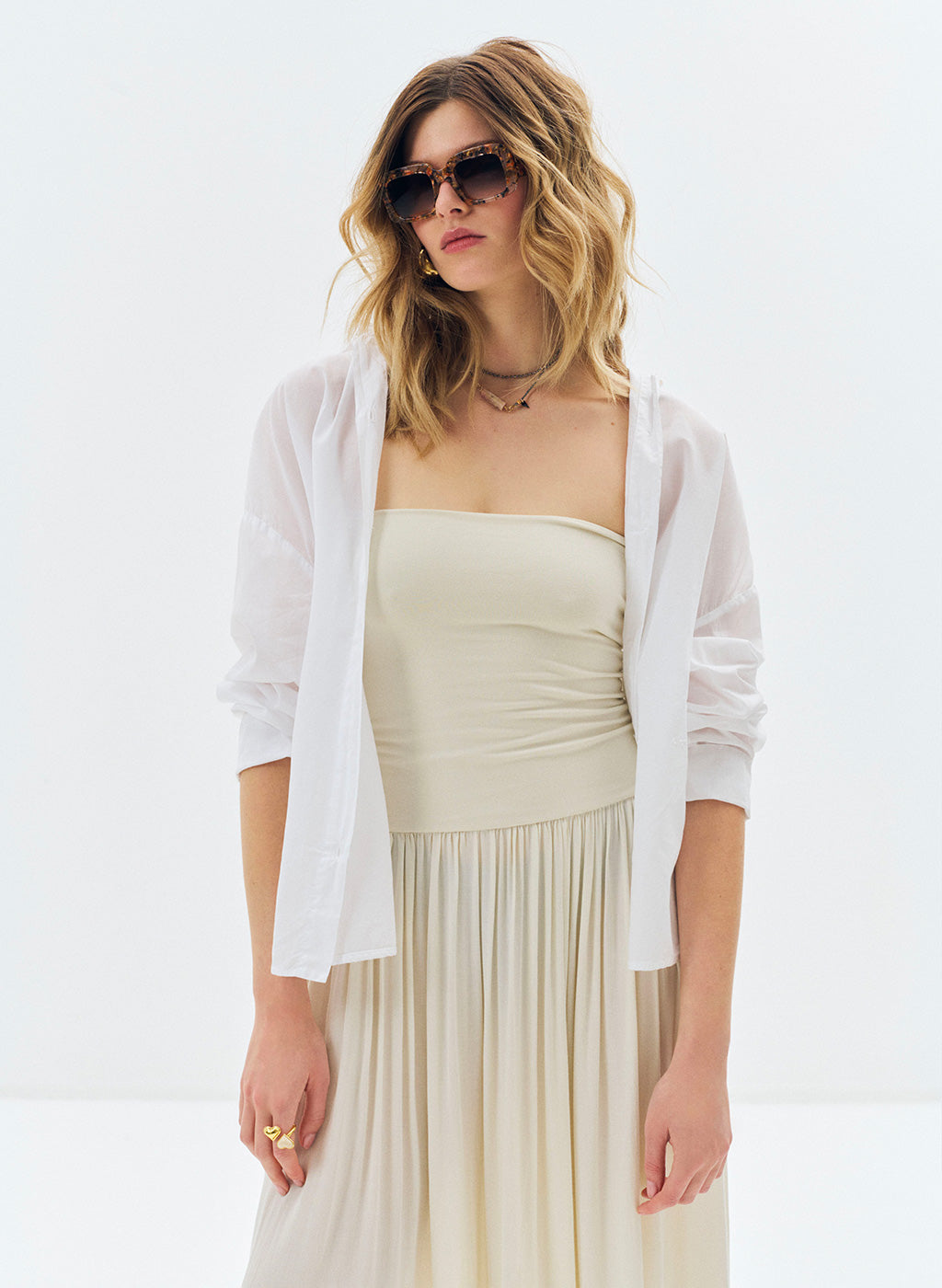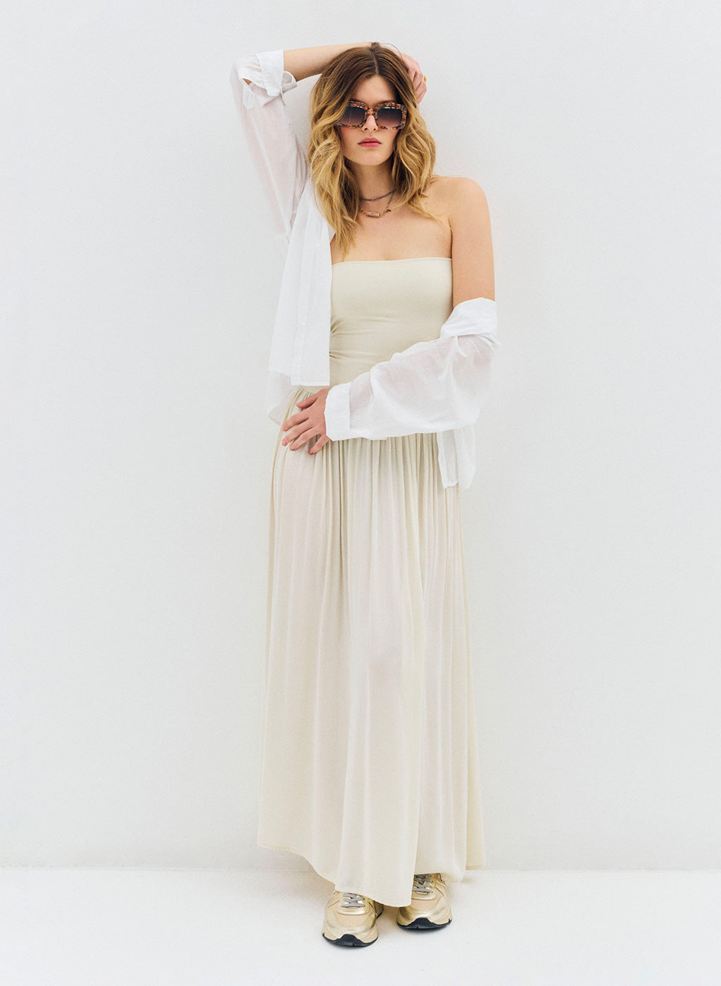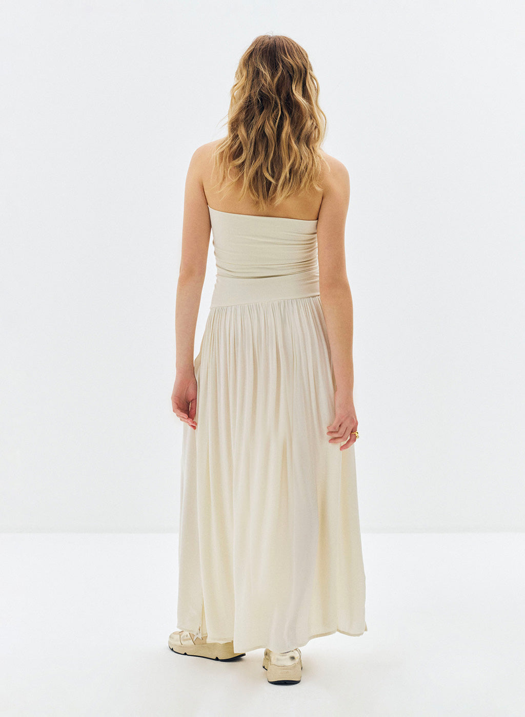 Robe longue Lyv beige à bustier bi-matière