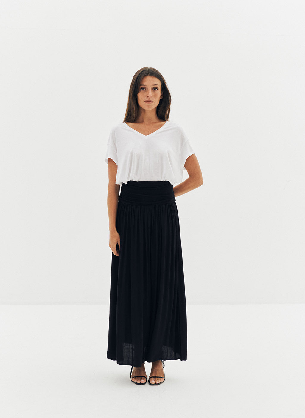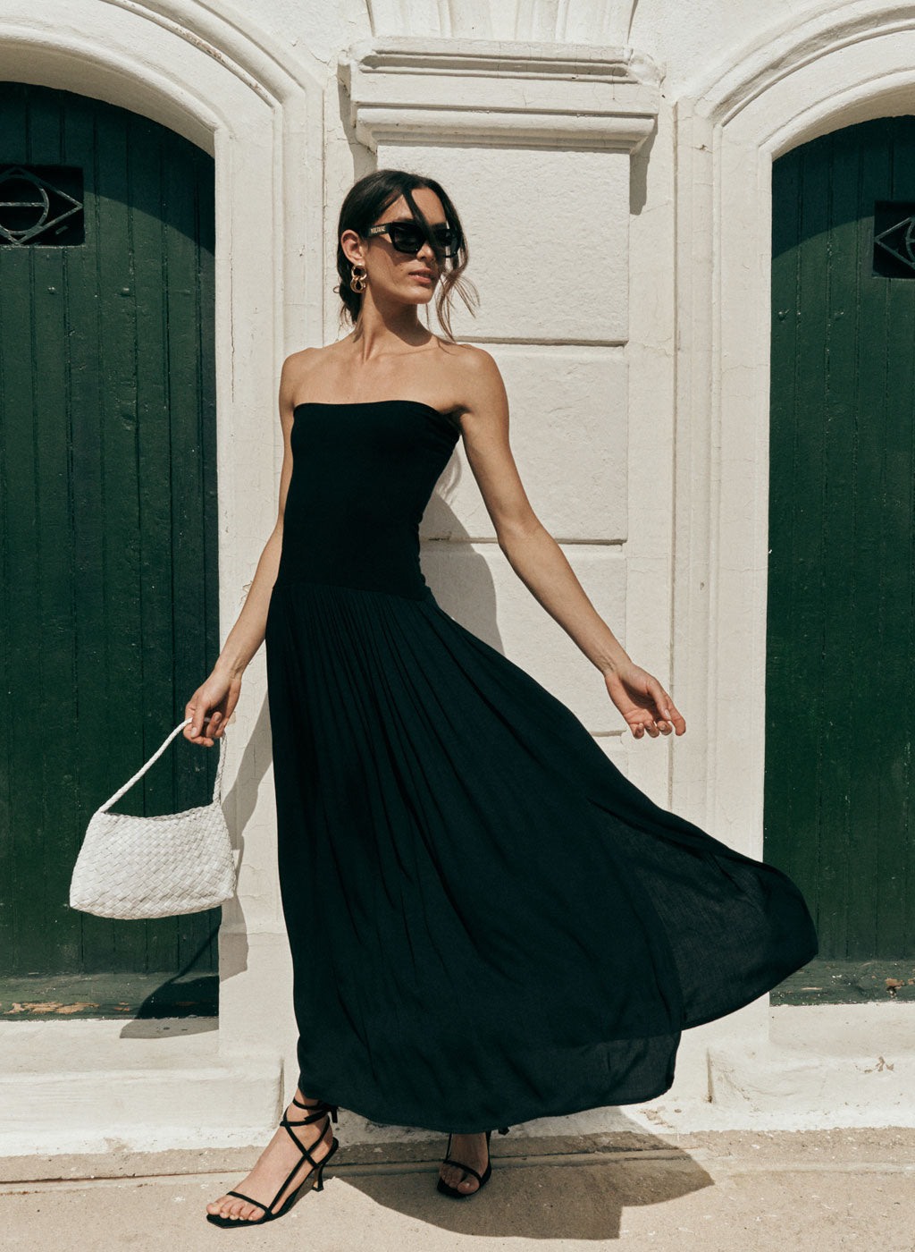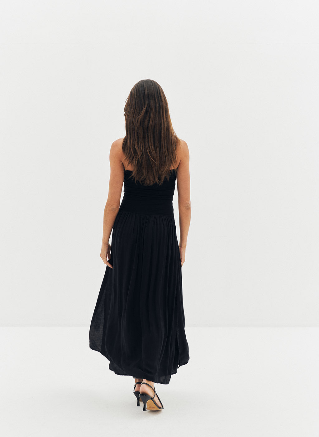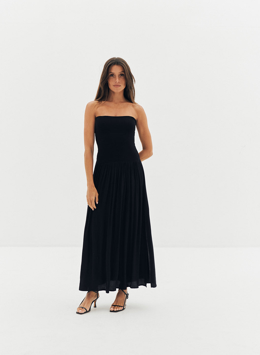 Robe longue Lyv beige à bustier bi-matière