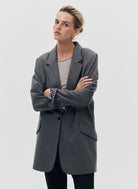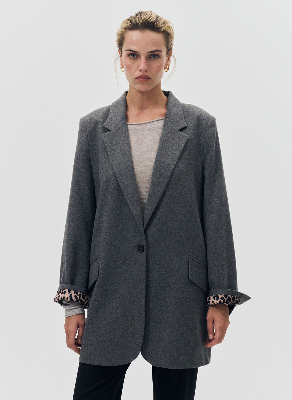 La veste de blazer Geor en flanelle beige revisite le vestiaire masculin avec une touche moderne. Sa coupe oversize et son col tailleur en font une pièce forte, facile à associer sur une chemise ou un tee-shirt blanc. Ses poches à rabats, sa fermeture boutonnée et sa doublure intérieure léopard lui apportent caractère et élégance. Pourquoi vous l’aimerez : son allure oversize chic qui transforme une tenue simple en look affirmé. ✔ Coupe oversize d’inspiration masculine – prenez votre taille habituelle ✔ Col tailleur et fermeture boutonnée ✔ Doublure intérieure imprimé léopard ✔ Designé dans le sud de la France ✔ Fabriqué à 100% au Portugal, du sourcing à la production