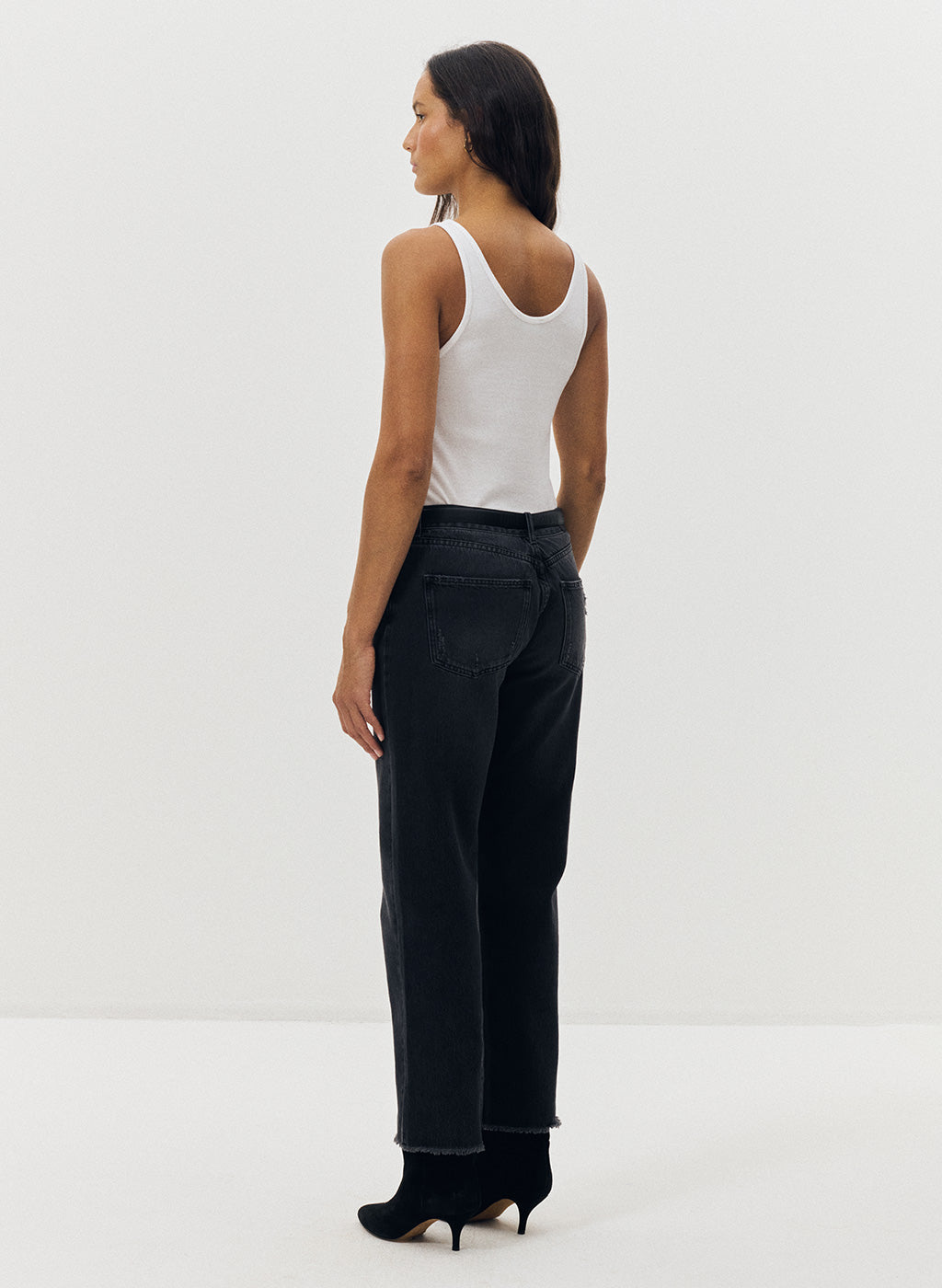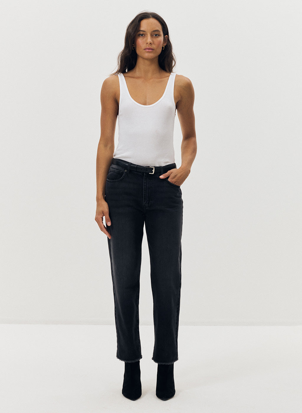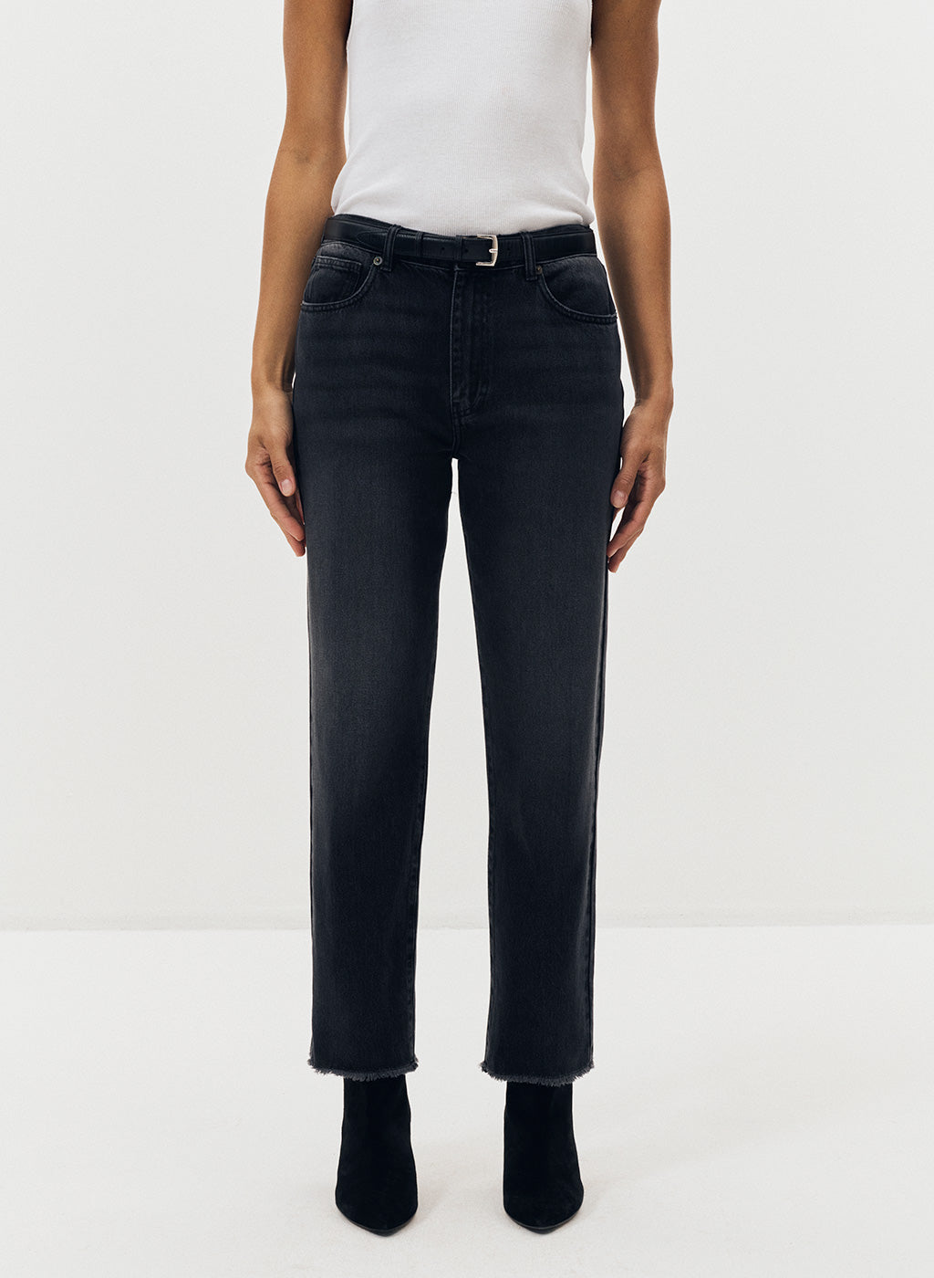 Le jean Henzo est un incontournable du vestiaire féminin, pensé pour traverser les saisons avec style. Confectionné dans un denim 100% coton, il se distingue par son délavage noir et son bord franc légèrement effiloché. Sa coupe droite et sa taille mi-haute offrent un confort et une silhouette moderne.