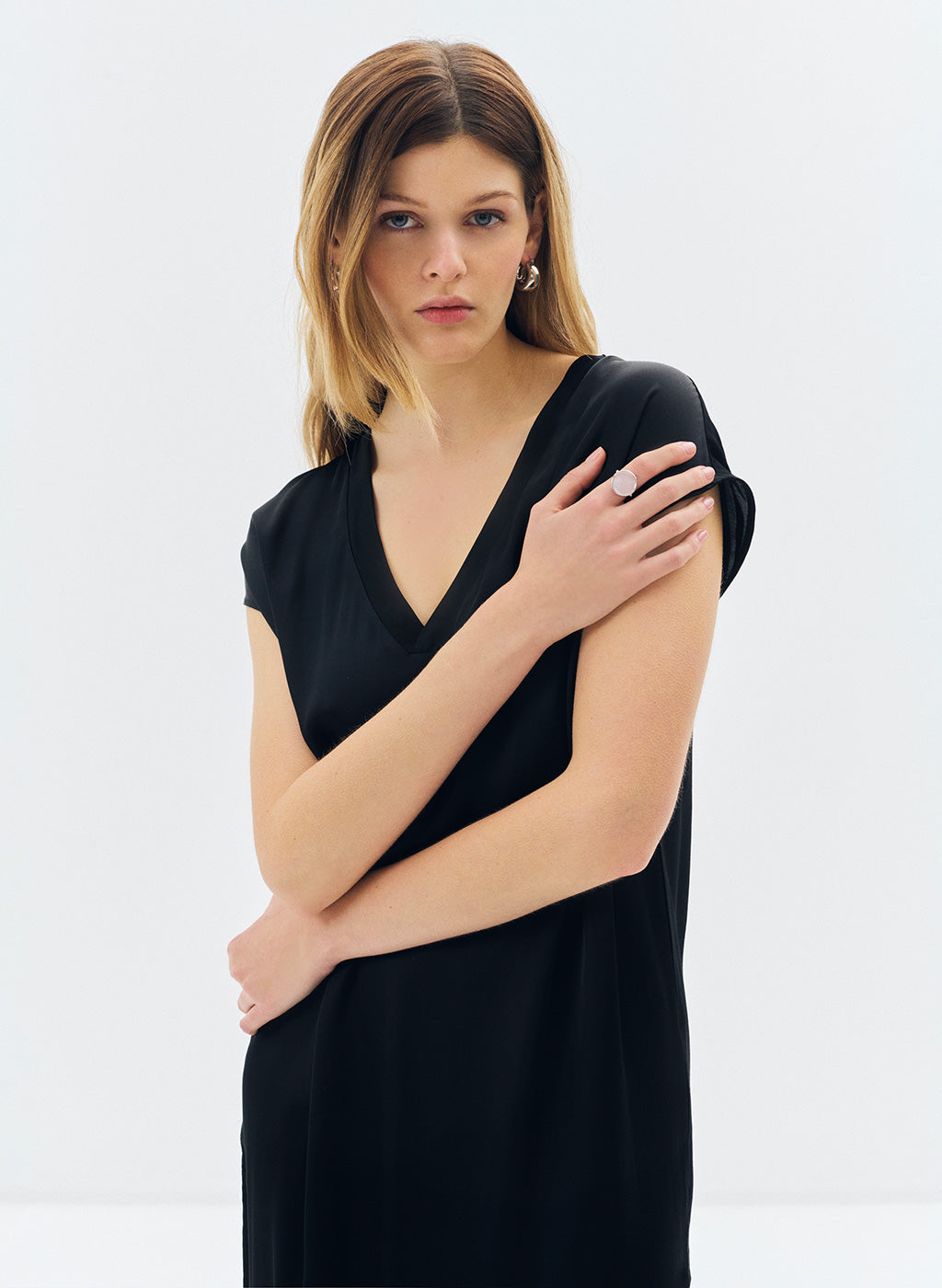 La robe Jadya présente une coupe ample fluide, avec une silhouette droite. Prenez votre taille habituelle.