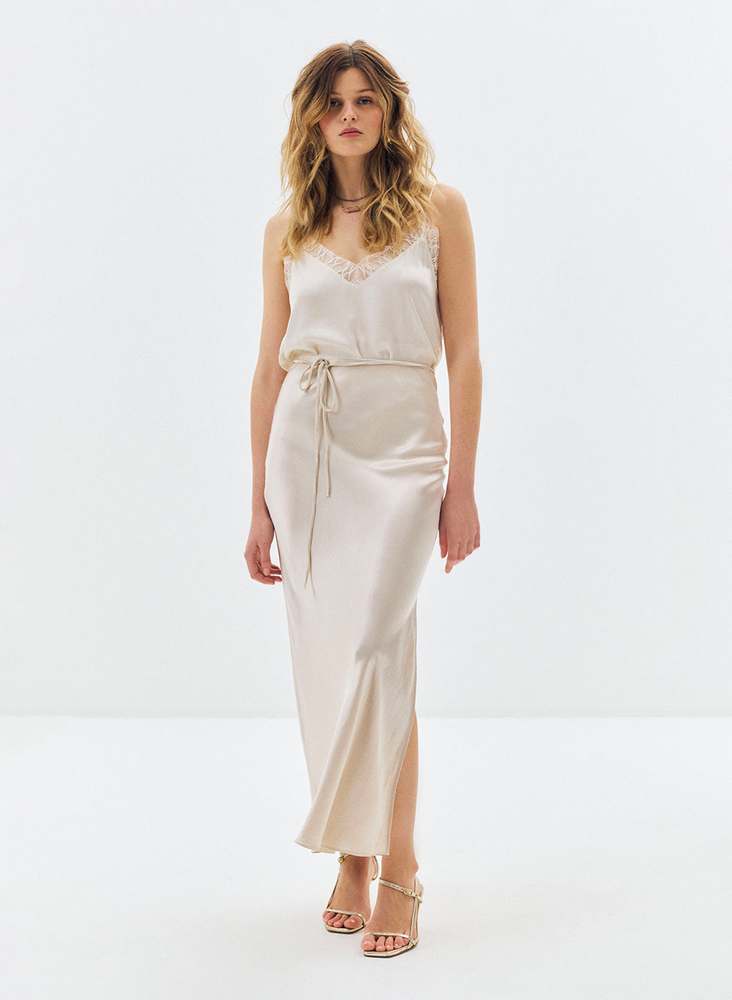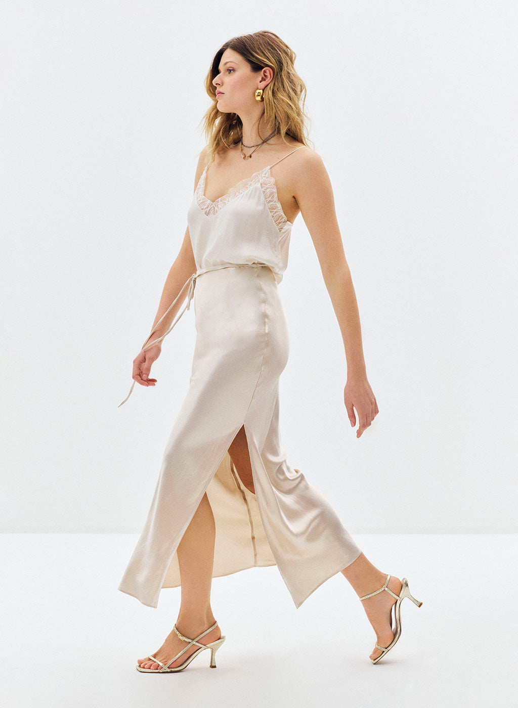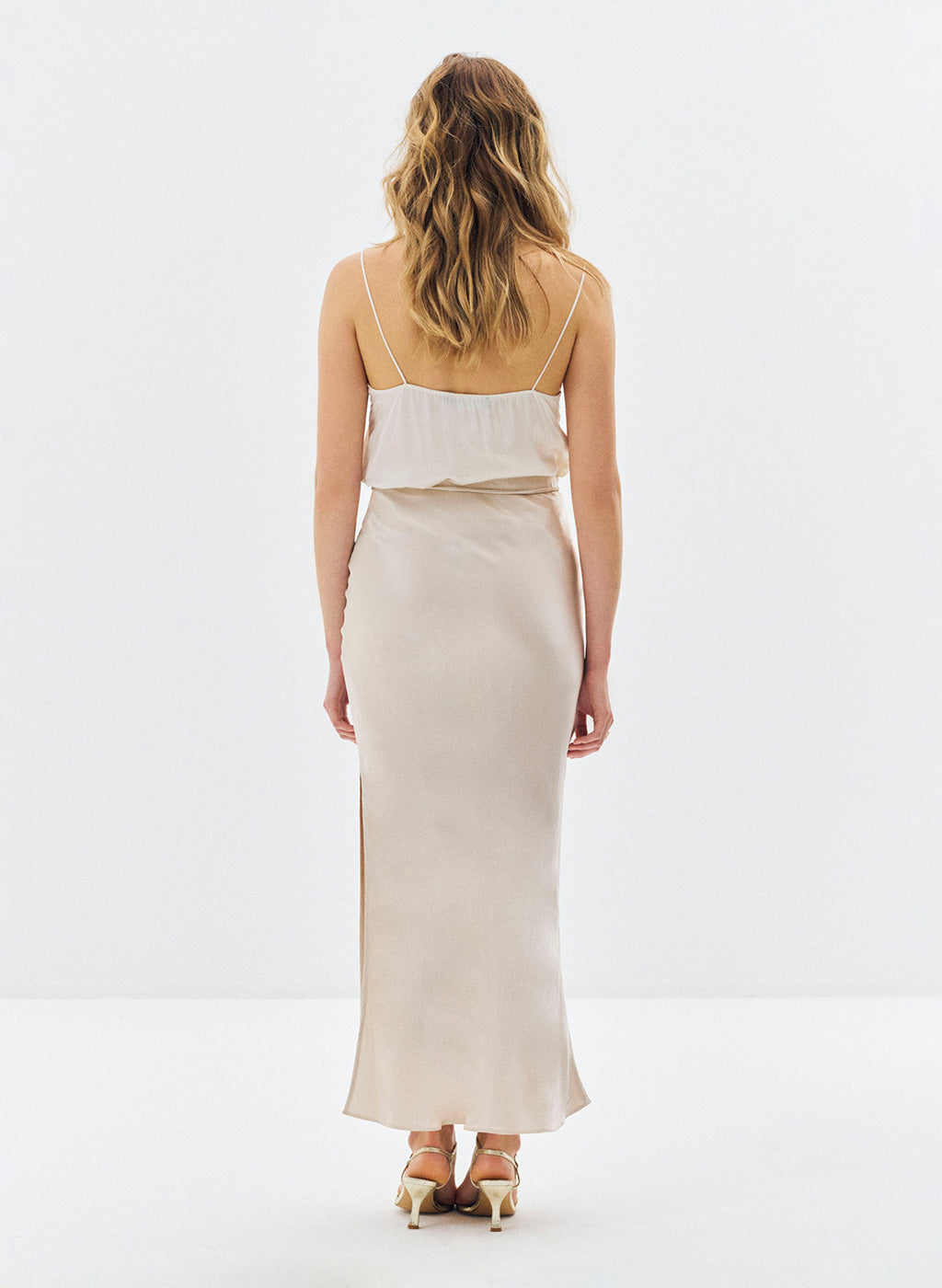 La jupe Kory présente une coupe longue et fluide. Prenez votre taille habituelle.