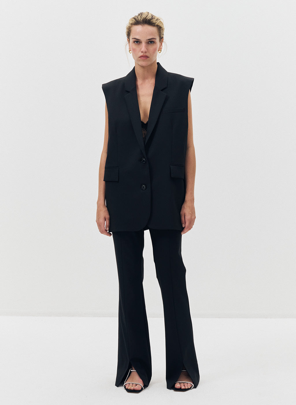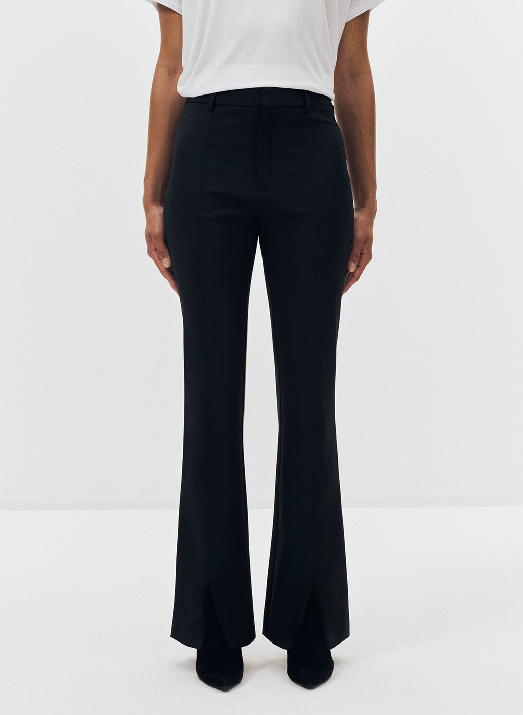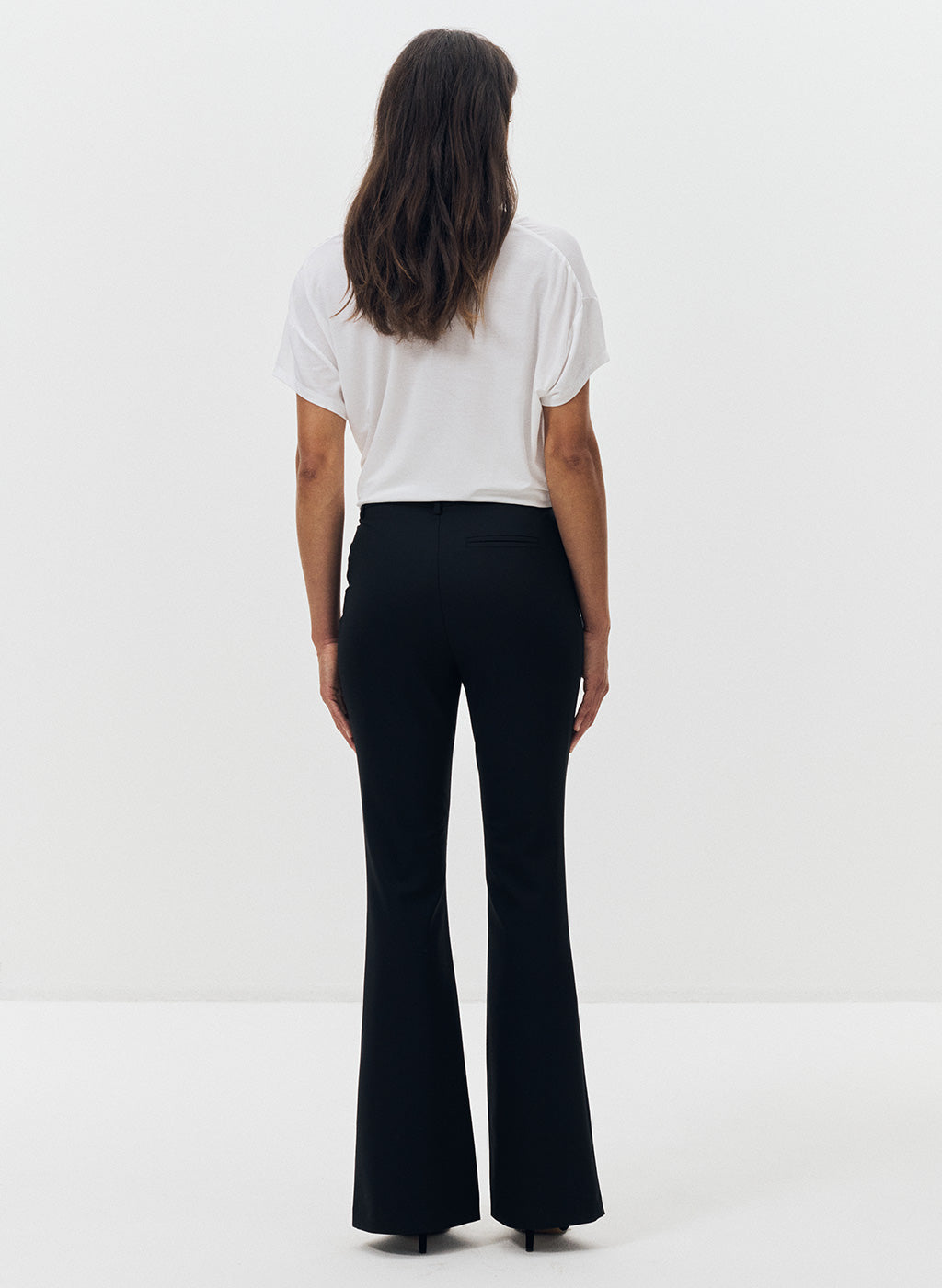 Le pantalon de tailleur Olen adopte une coupe flare ajustée qui met en valeur la silhouette tout en restant confortable. Sa bande de taille fermée par un bouton et un crochet caché, complétée par une braguette discrète, assure un tombé impeccable. Une poche passepoilée au dos apporte une note classique, tandis que les fentes discrètes à l’avant du bas de jambe modernisent la ligne et facilitent le mouvement.