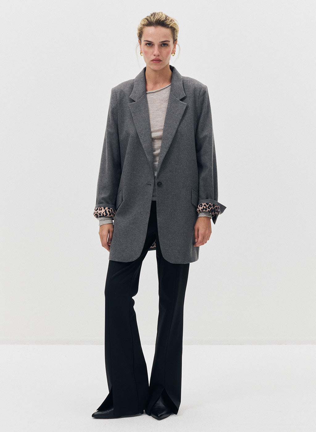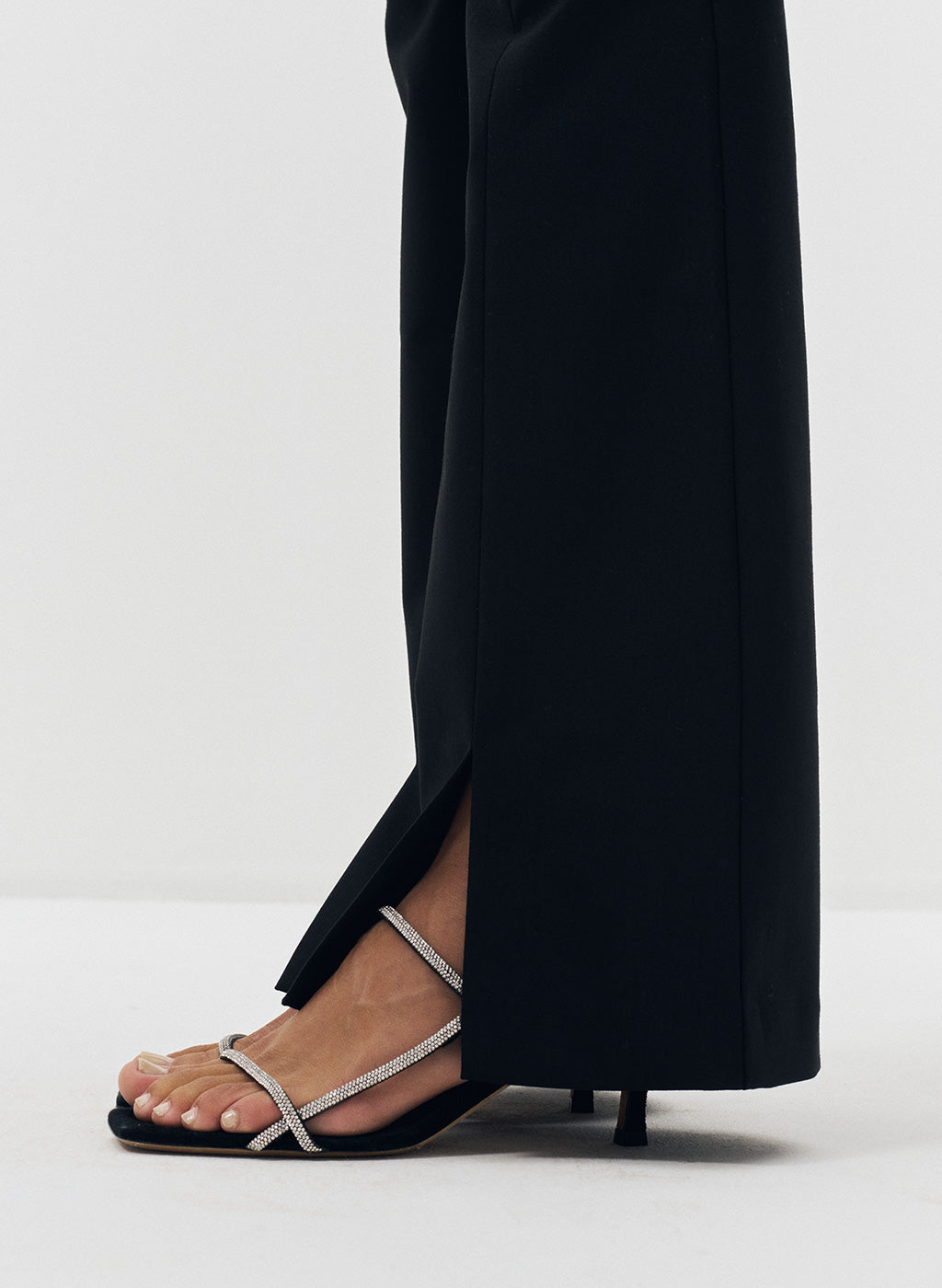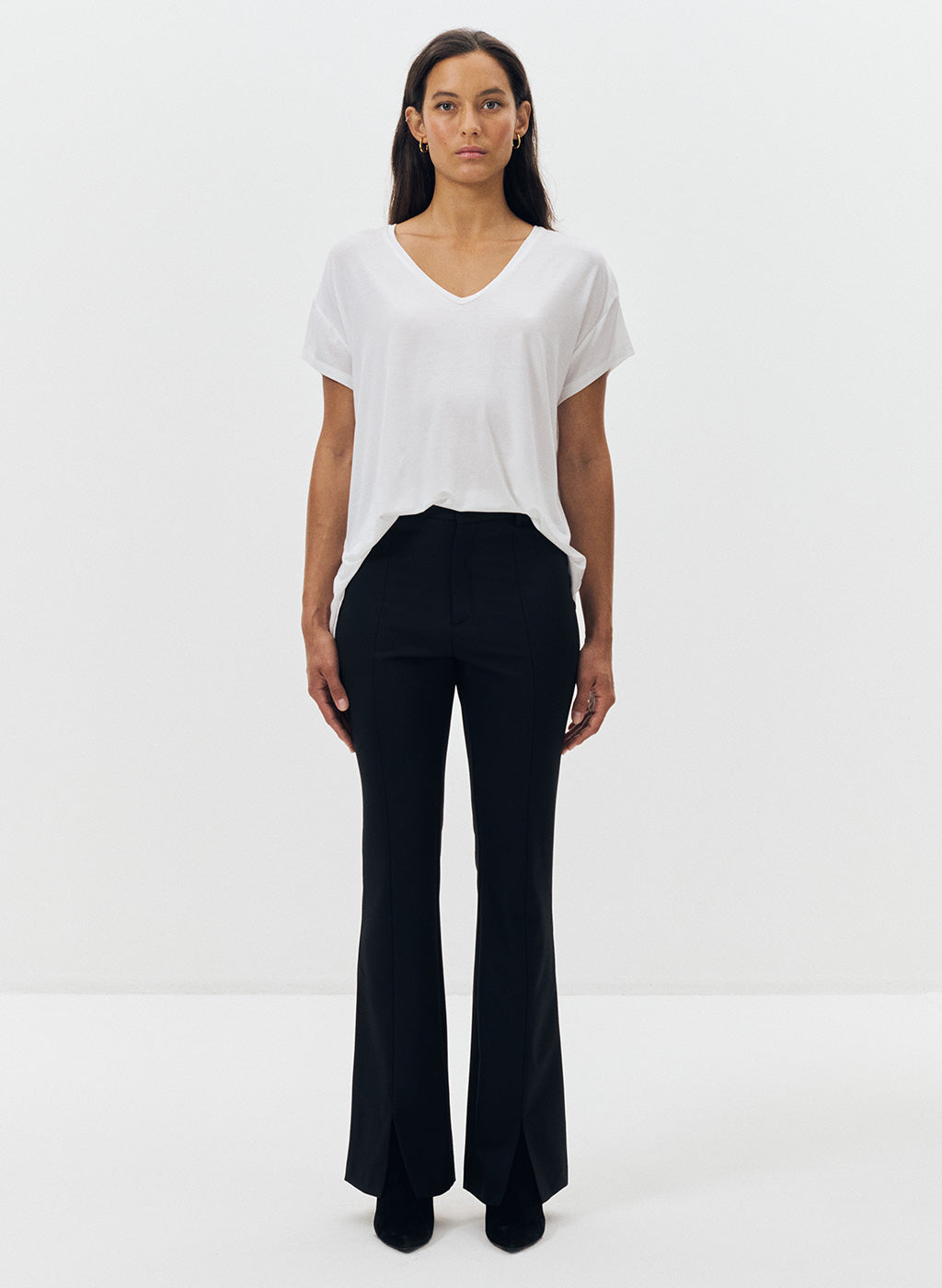 Le pantalon de tailleur Olen adopte une coupe flare ajustée qui met en valeur la silhouette tout en restant confortable. Sa bande de taille fermée par un bouton et un crochet caché, complétée par une braguette discrète, assure un tombé impeccable. Une poche passepoilée au dos apporte une note classique, tandis que les fentes discrètes à l’avant du bas de jambe modernisent la ligne et facilitent le mouvement.