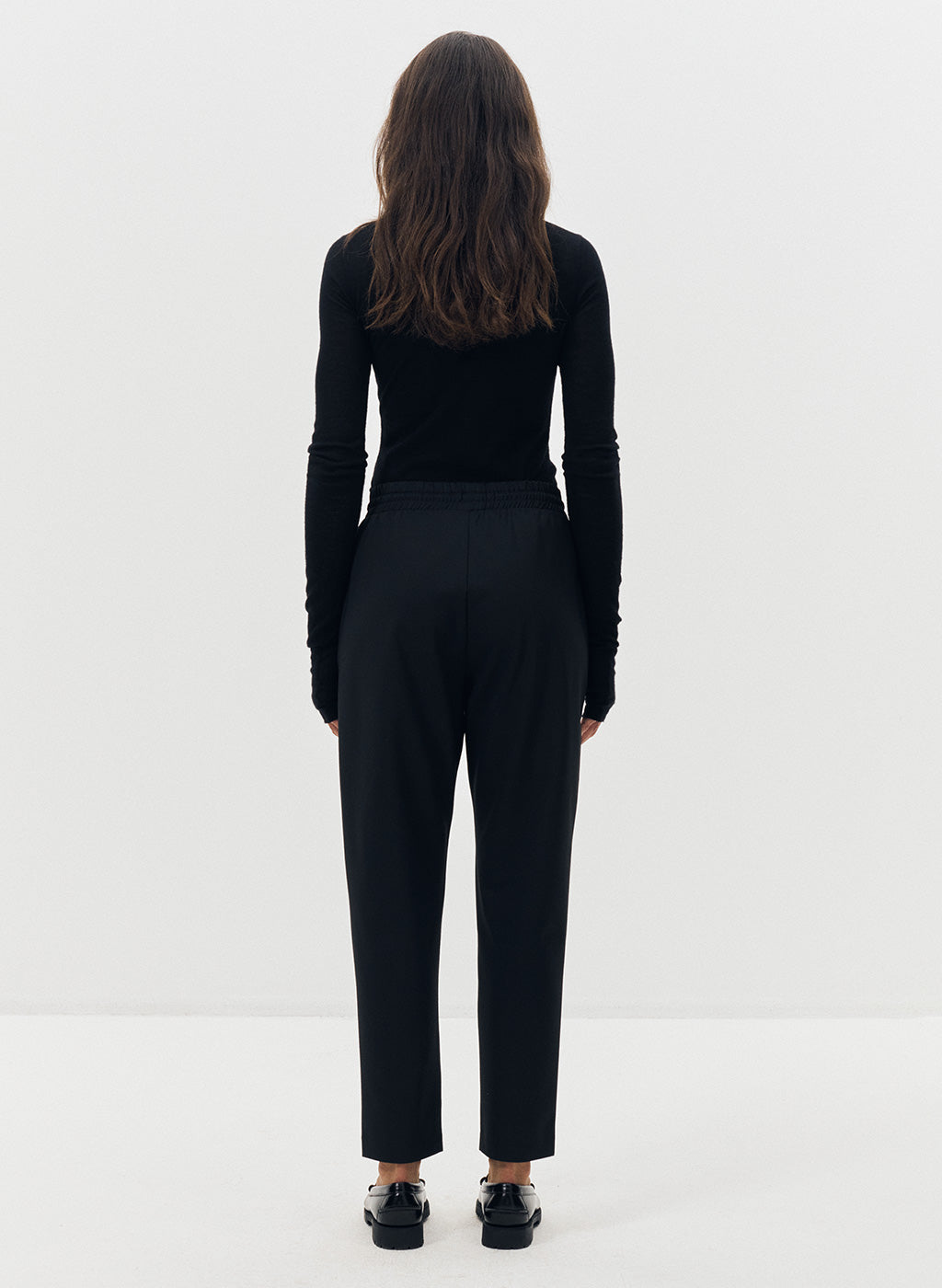 Le pantalon Ilon séduit par sa coupe cigarette élégante et son sergé de viscose au tombé fluide. Sa taille haute élastiquée, soulignée d’un cordon de serrage, modernise l’allure et offre un confort au quotidien. Doté de poches italiennes pratiques, il allie décontraction et sophistication. Sa ligne fuselée affine la silhouette et se prête aussi bien aux looks de bureau qu’aux tenues plus casual.