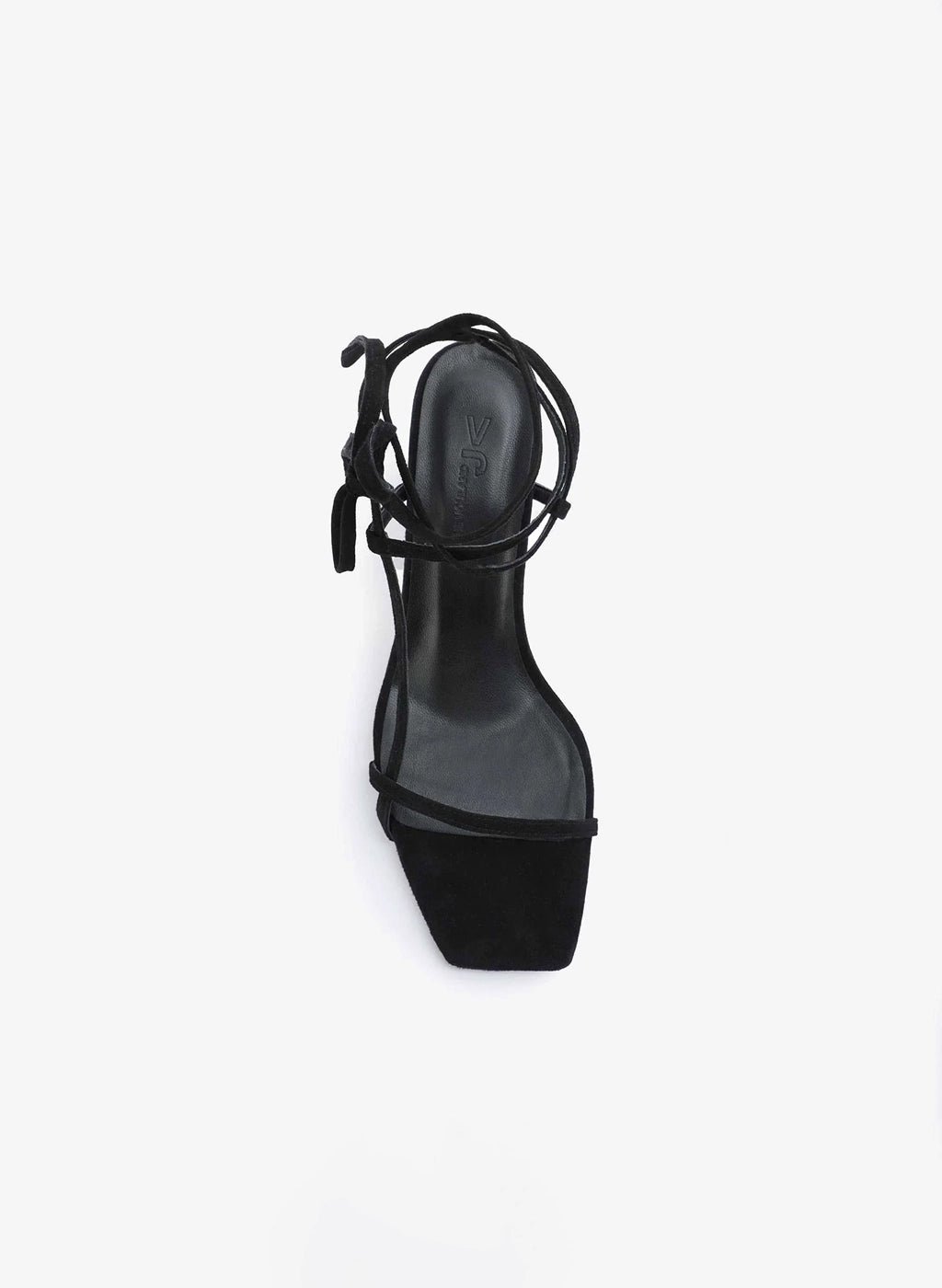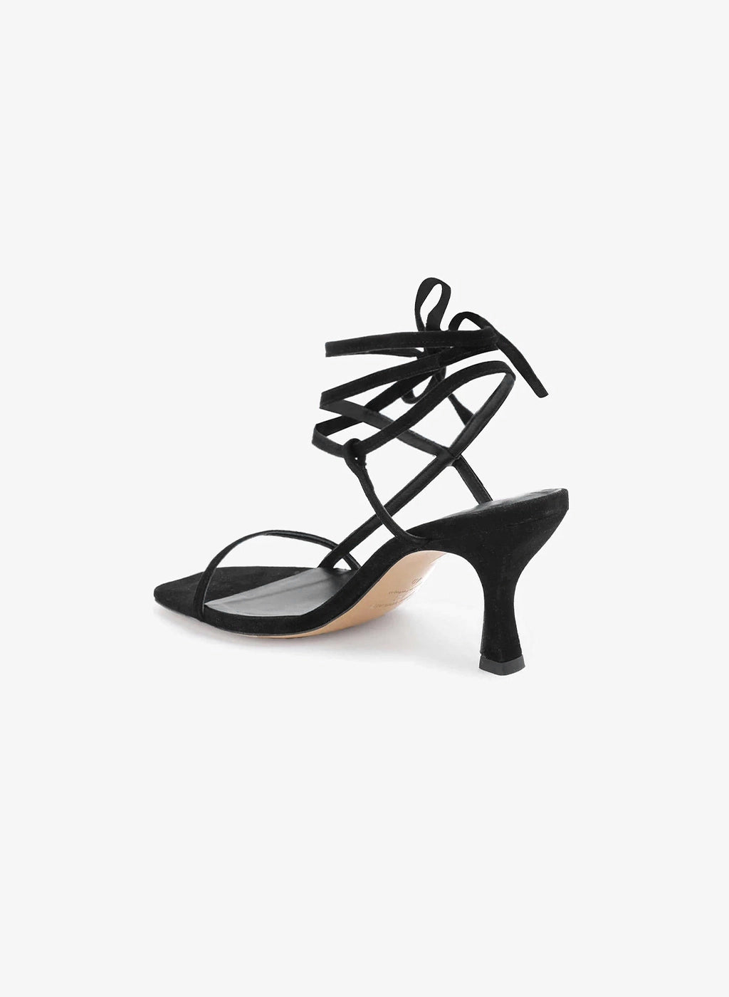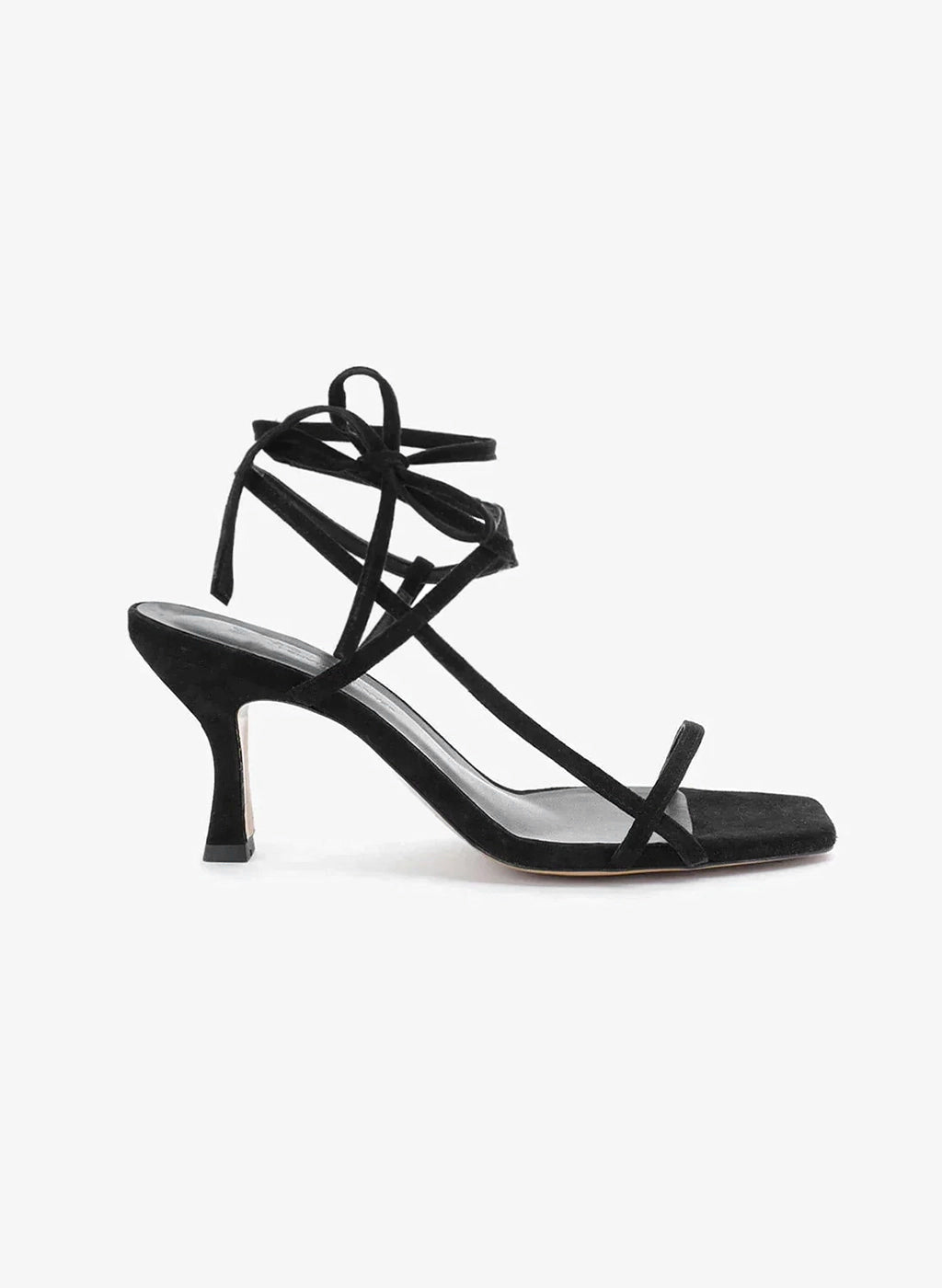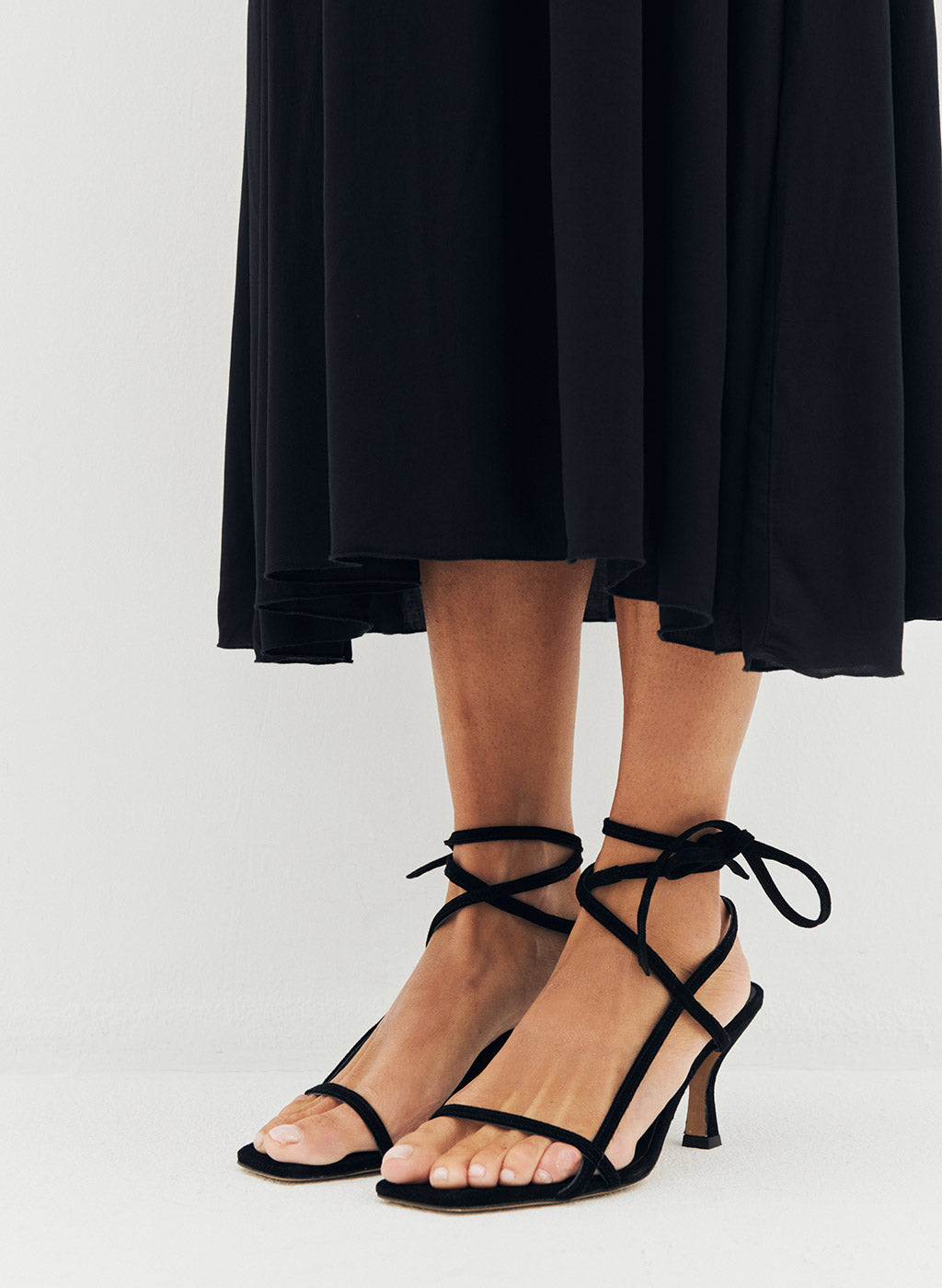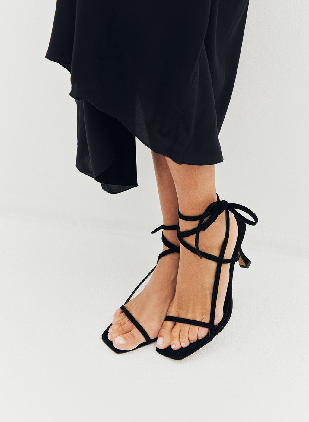 Les sandales Sublim allient à la perfection confort et élégance. Confectionnées en cuir suédé noir, elles présentent de fines brides à nouer autour de la cheville, apportant une touche estivale et tendance qui sublime vos jambes avec féminité. Le design épuré et raffiné est complété par un talon bobine de 7cm qui offre un maintien optimal tout en garantissant un confort durable. Ces sandales sont idéales pour allier style et praticité. Leur silhouette chic et versatile s’associe aussi bien à un look casual qu'à une tenue plus sophistiquée, faisant de ces sandales un incontournable de votre garde-robe. Prenez votre taille habituelle. Si vous êtes entre deux tailles, optez pour la taille supérieure. Designées dans le sud de la France.Fabriquées au Portugal, cuir sourcé en Italie.