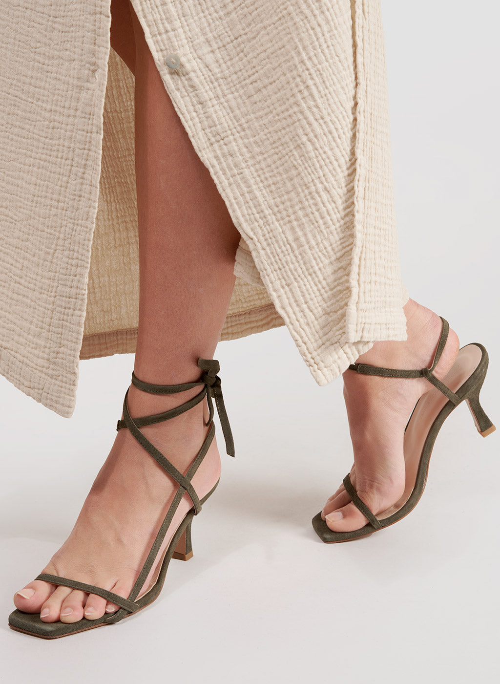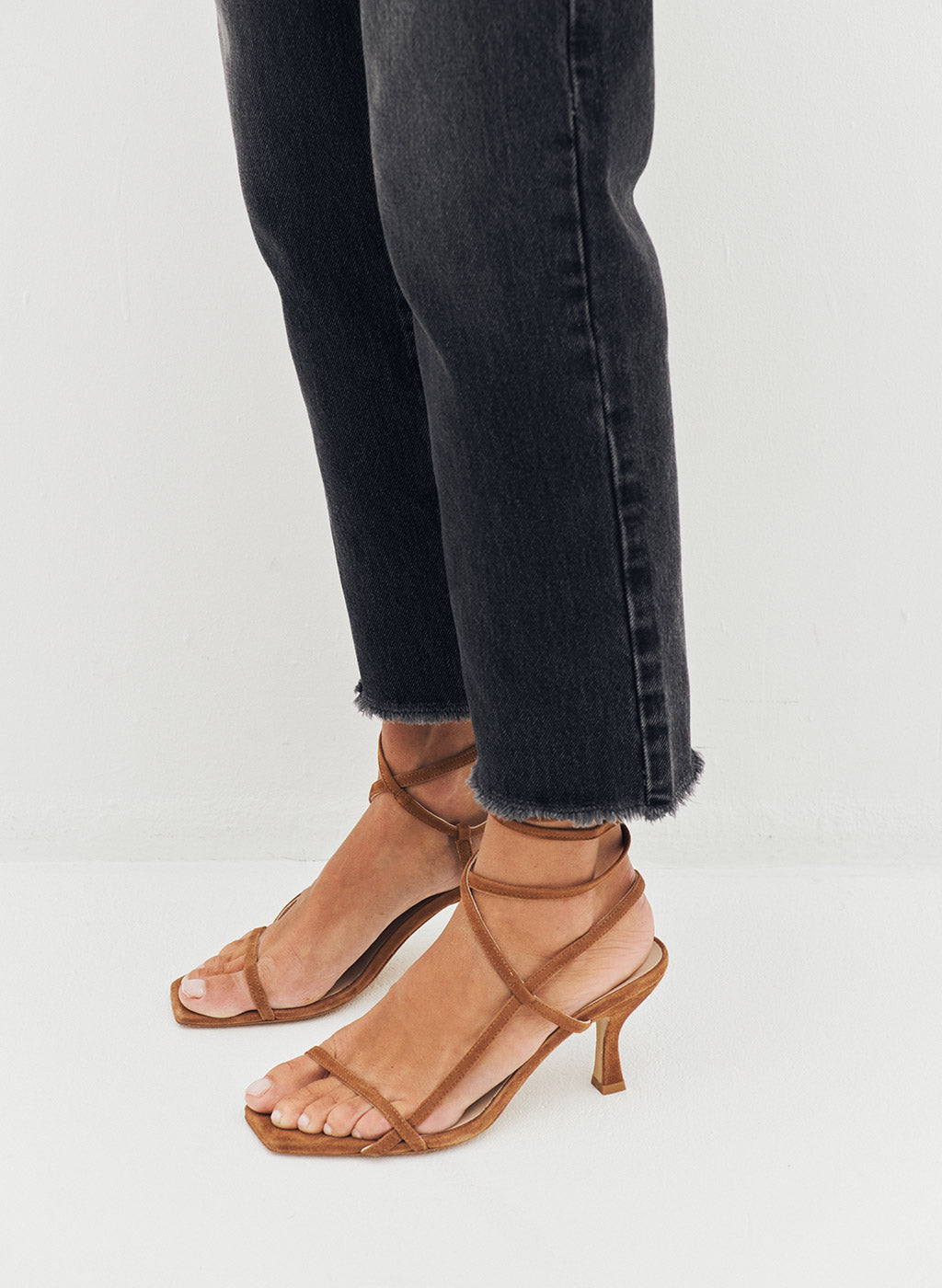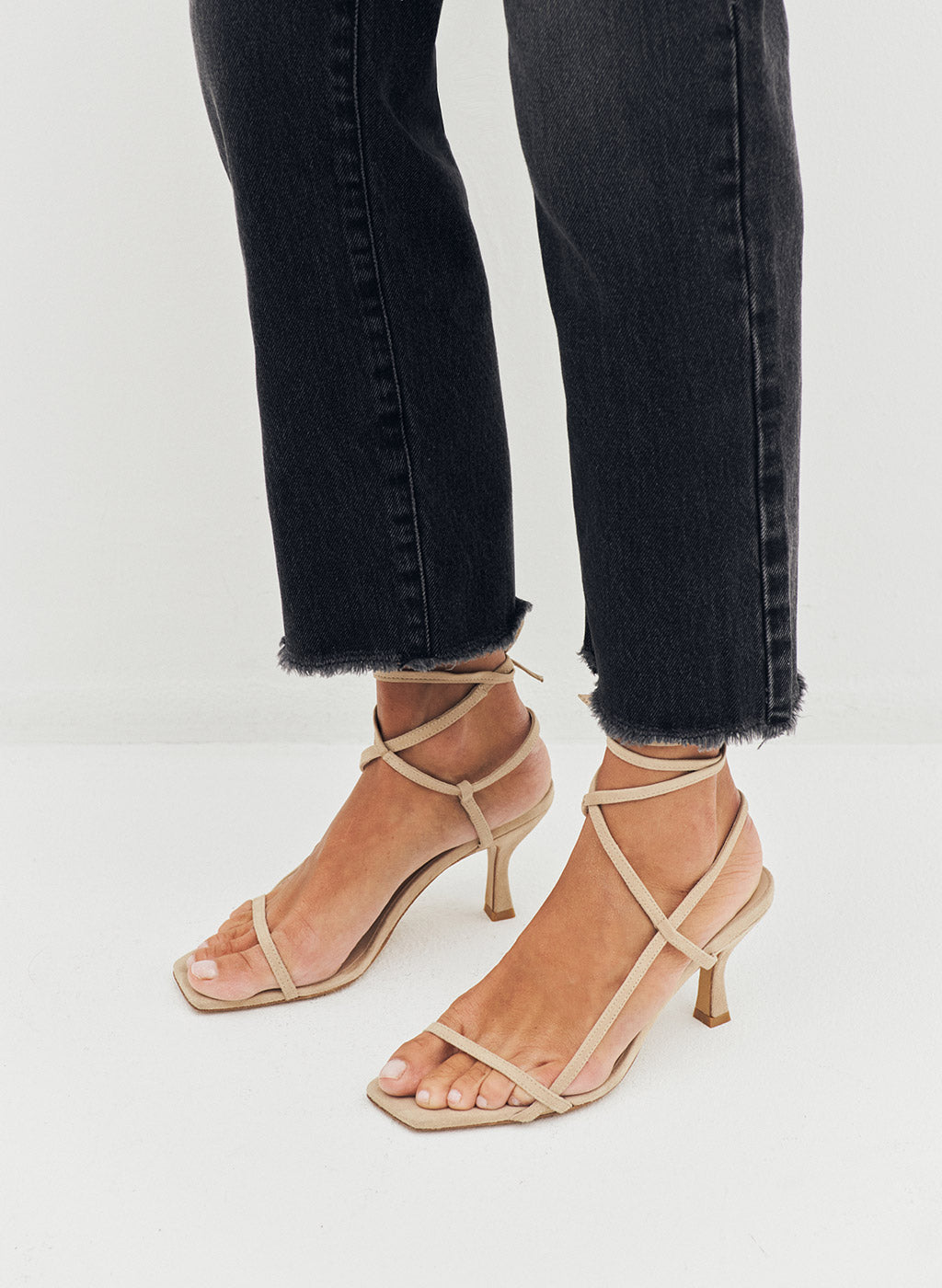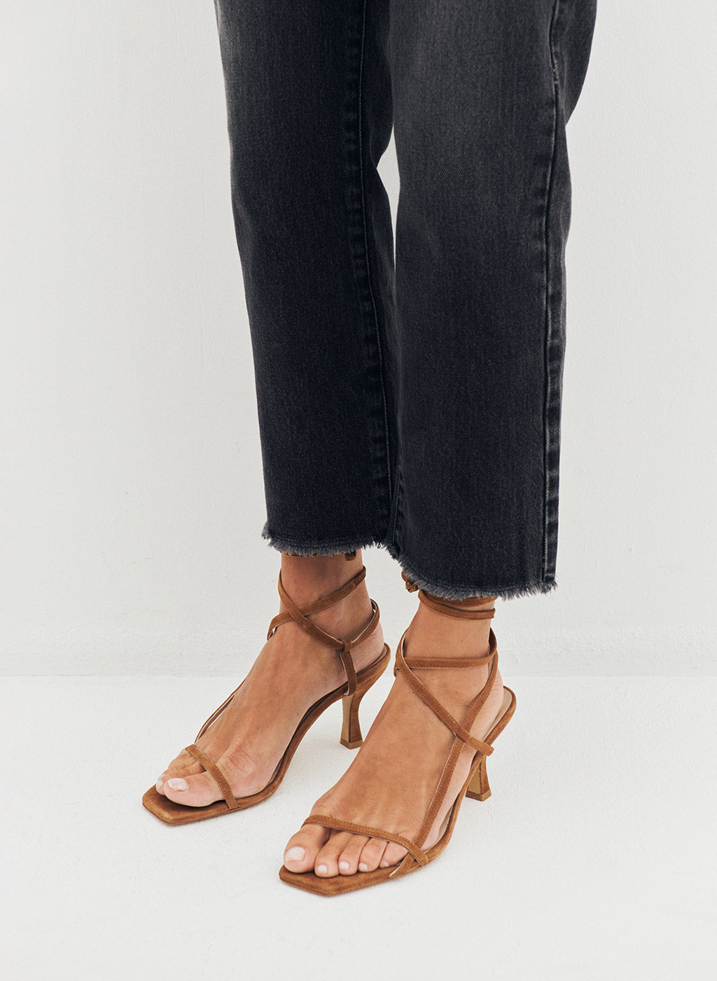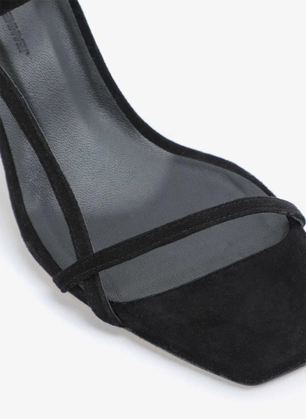 Les sandales Sublim allient à la perfection confort et élégance. Confectionnées en cuir suédé noir, elles présentent de fines brides à nouer autour de la cheville, apportant une touche estivale et tendance qui sublime vos jambes avec féminité. Le design épuré et raffiné est complété par un talon bobine de 7cm qui offre un maintien optimal tout en garantissant un confort durable. Ces sandales sont idéales pour allier style et praticité. Leur silhouette chic et versatile s’associe aussi bien à un look casual qu'à une tenue plus sophistiquée, faisant de ces sandales un incontournable de votre garde-robe. Prenez votre taille habituelle. Si vous êtes entre deux tailles, optez pour la taille supérieure. Designées dans le sud de la France.Fabriquées au Portugal, cuir sourcé en Italie.
