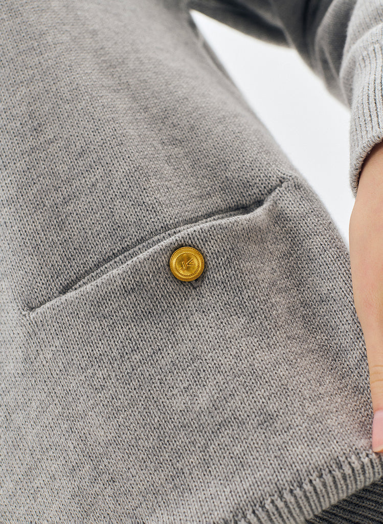 ✔ Deux poches plaquées avec boutons dorés siglés "JV"