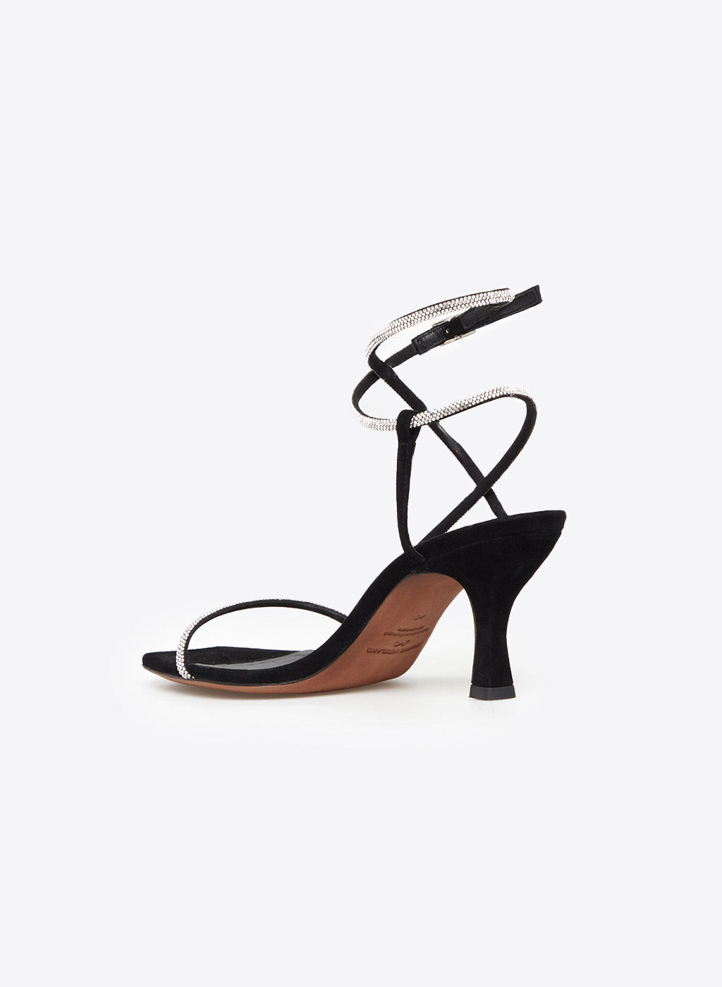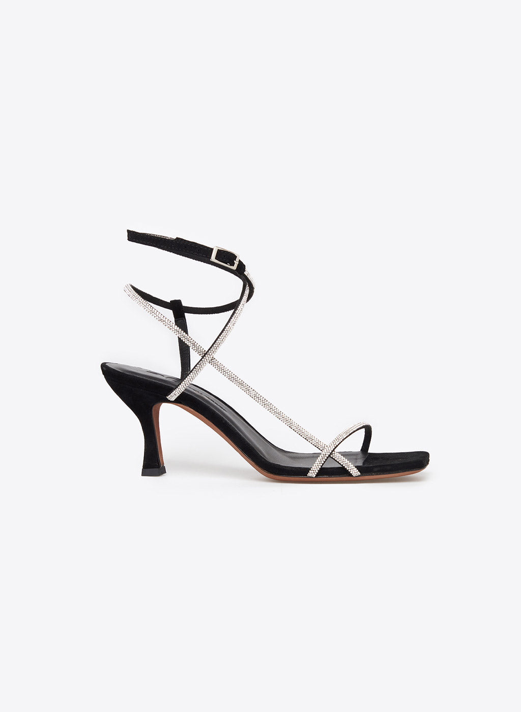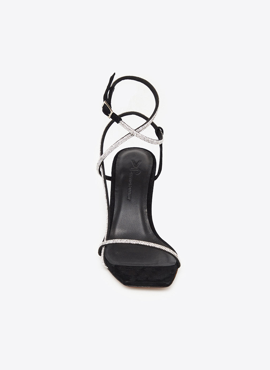 Les sandales Sublim à strass ajoutent une touche de glamour et de modernité à notre collection de chaussures. Leur design raffiné se compose de fines brides en cuir suédé noir, sublimées par des strass qui captent la lumière avec subtilité, apportant éclat et élégance à vos tenues. Le talon bobine de 7 cm, recouvert de cuir, a été soigneusement conçu pour offrir à la fois un galbe élégant et un confort optimal tout au long de la journée ou de la soirée. La fermeture se fait facilement grâce à une boucle argentée ajustable au niveau de la cheville, offrant un maintien parfait. Les semelles intérieures et extérieures en cuir garantissent une finition haut de gamme et un confort supplémentaire.