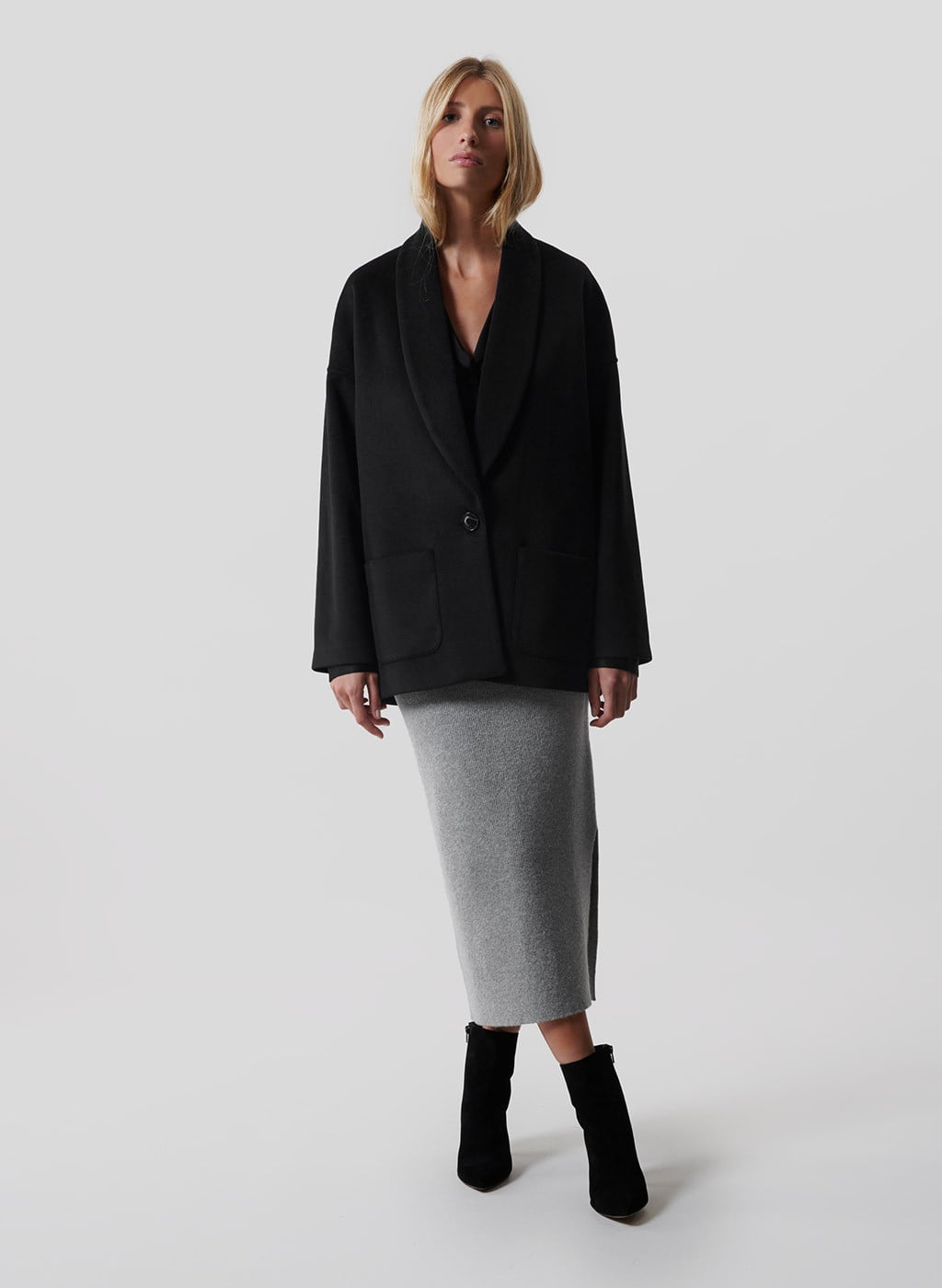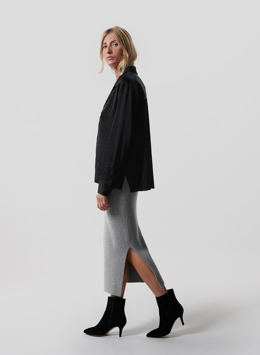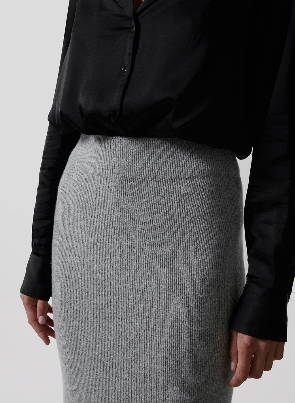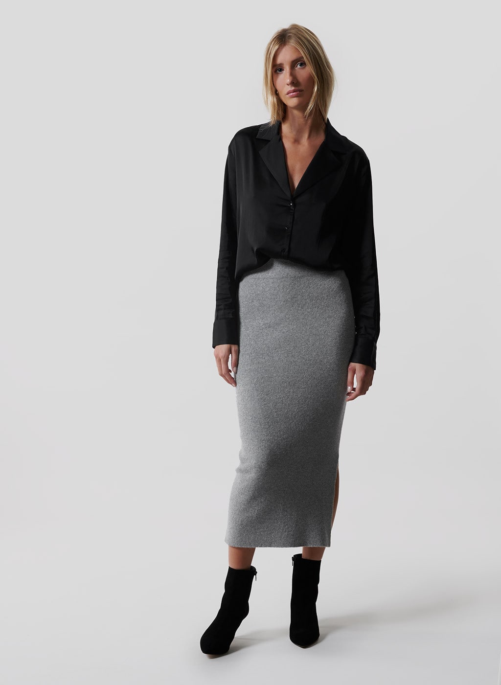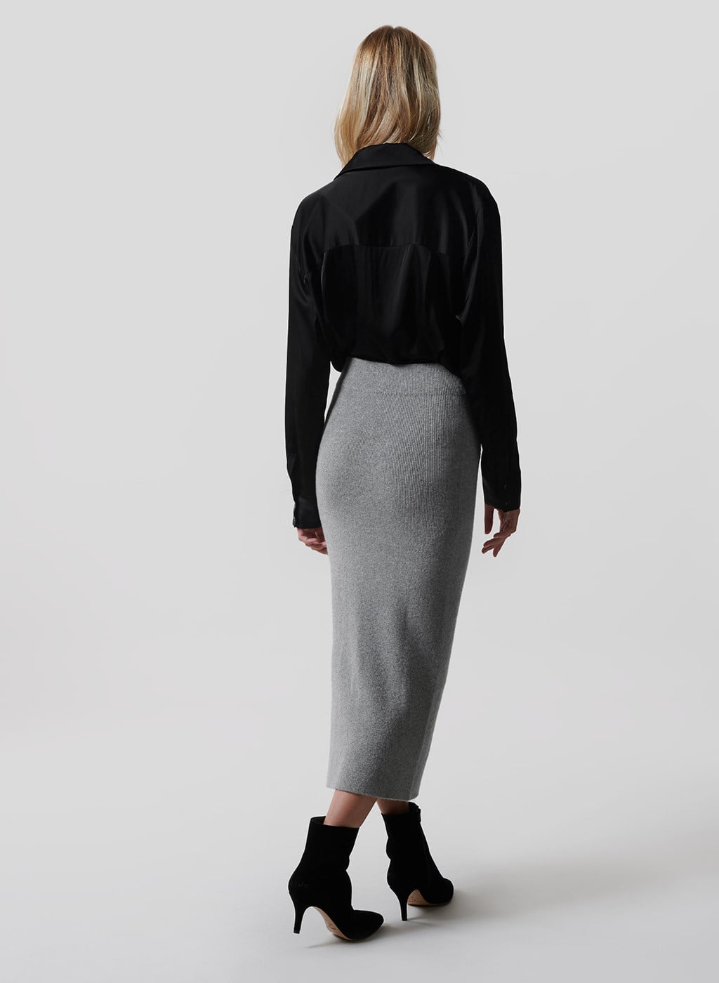 La jupe Gaya est une pièce cosy et féminine à adopter dès les premiers frissons. Confectionnée dans une maille douce mêlant laine et cachemire, elle séduit par sa coupe tubulaire élégante et son confort enveloppant. Sa maille côtelée lui confère structure et souplesse, tout en épousant délicatement les formes du corps. Sa taille élastiquée permet de l’enfiler en un geste, tandis que sa fente latérale apporte aisance et allure à chaque pas. Avec sa longueur midi, la jupe Gaya offre une silhouette droite et fluide, idéale à porter aussi bien avec un pull oversize qu’un top ajusté.