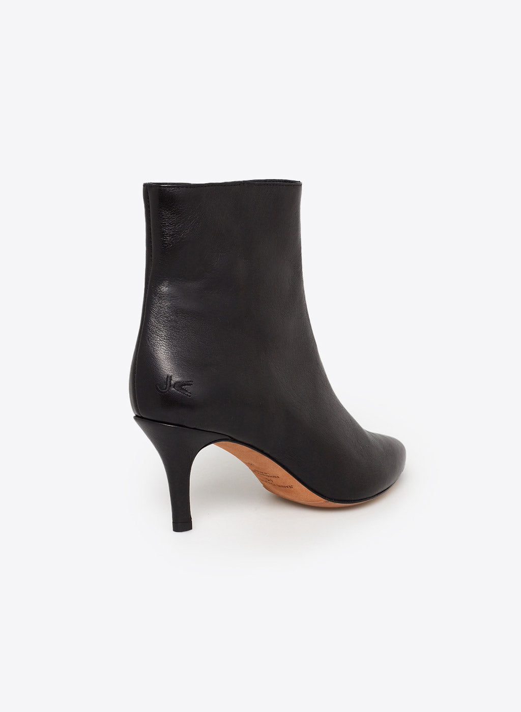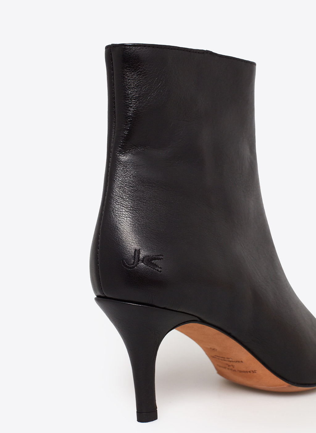 Les bottines Boye 70 en cuir noir mat séduisent par leur silhouette élancée, sublimée d’un bout pointu et d’un talon de 7 cm, pensé pour conjuguer élégance et confort au quotidien. Leur design épuré est discrètement signé à l’arrière par le logo JV brodé ton sur ton, symbole de raffinement et d’authenticité. Véritables caméléons du dressing, elles se prêtent à toutes les occasions : avec un jean pour une allure urbaine, un tailleur pour une attitude professionnelle, ou une robe fluide pour une note sophistiquée. Une pièce intemporelle, conçue pour sublimer vos looks au fil des saisons.