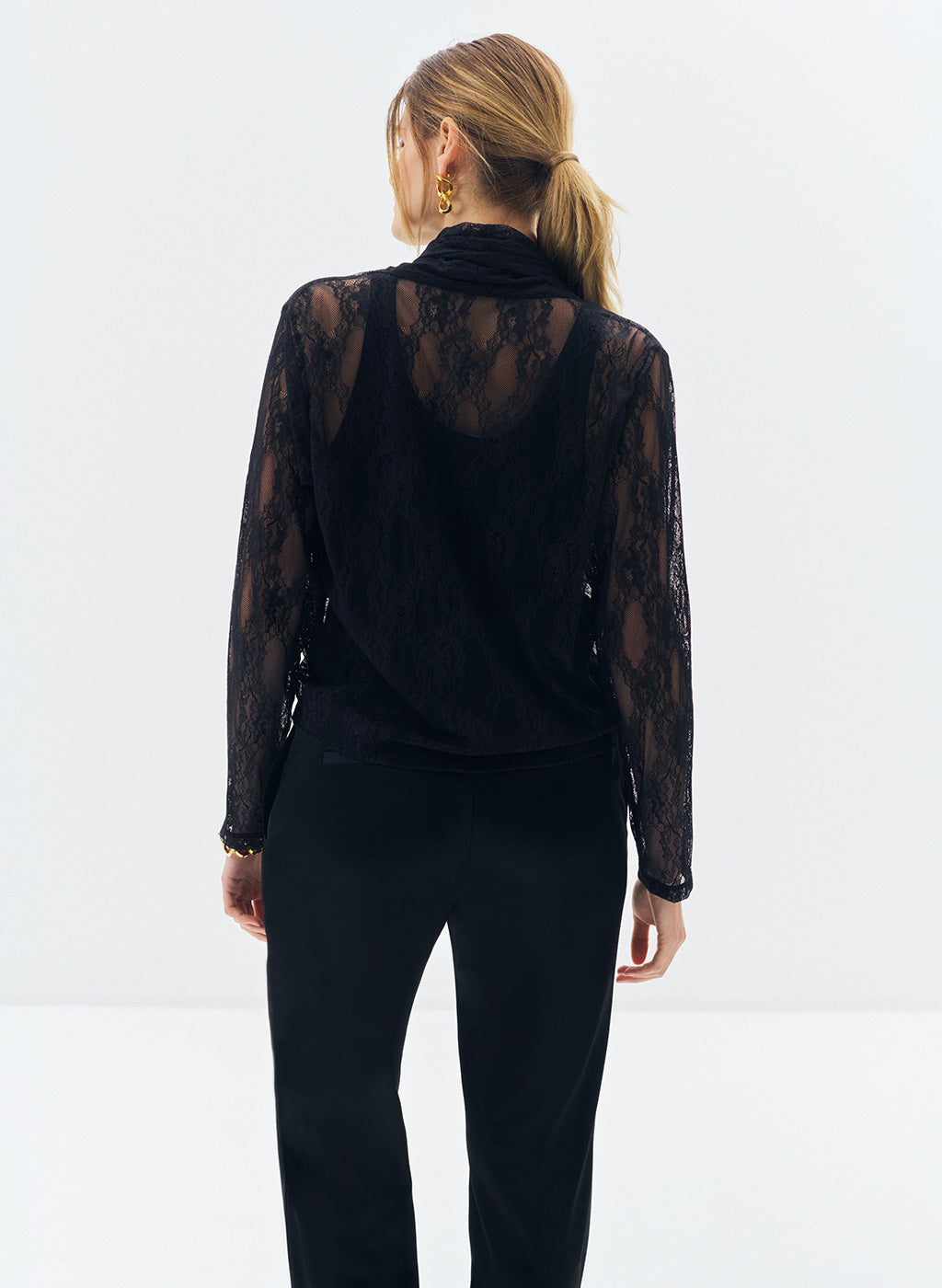 La blouse fluide Filla noire en dentelle est une pièce délicate qui allie raffinement et légèreté. Son col châle drapé, à nouer sur le devant, apporte une touche sophistiquée et féminine, tandis que ses manches longues subliment la silhouette avec élégance. Sa coupe droite et sa base épurée assurent un tombé fluide et intemporel, parfait pour jouer sur la transparence et les superpositions. À la fois aérienne et élégante, cette blouse s'adapte aussi bien aux occasions spéciales qu'à un look quotidien chic et moderne.