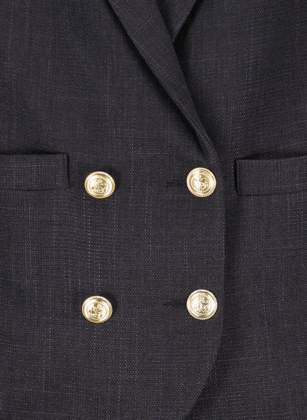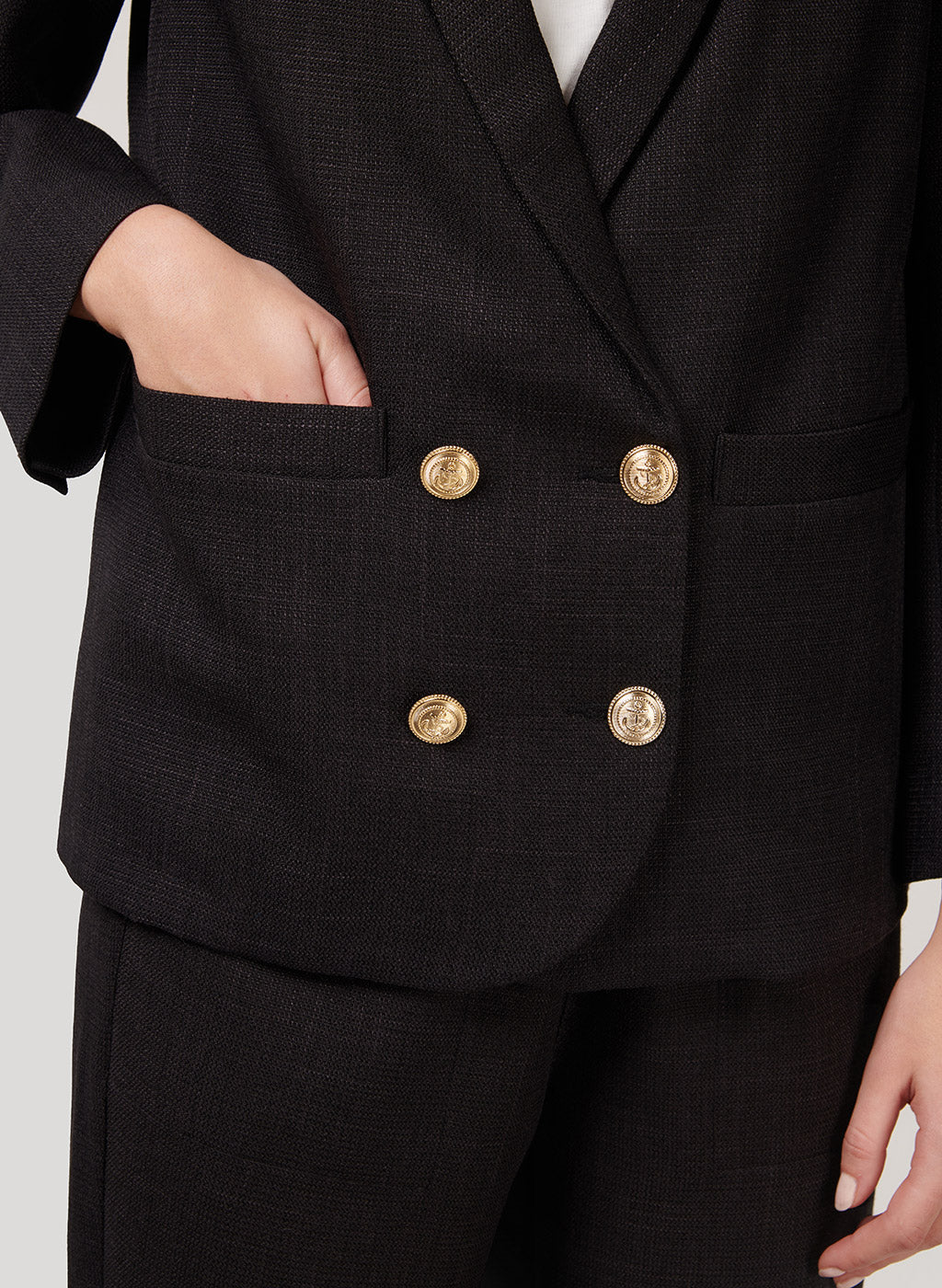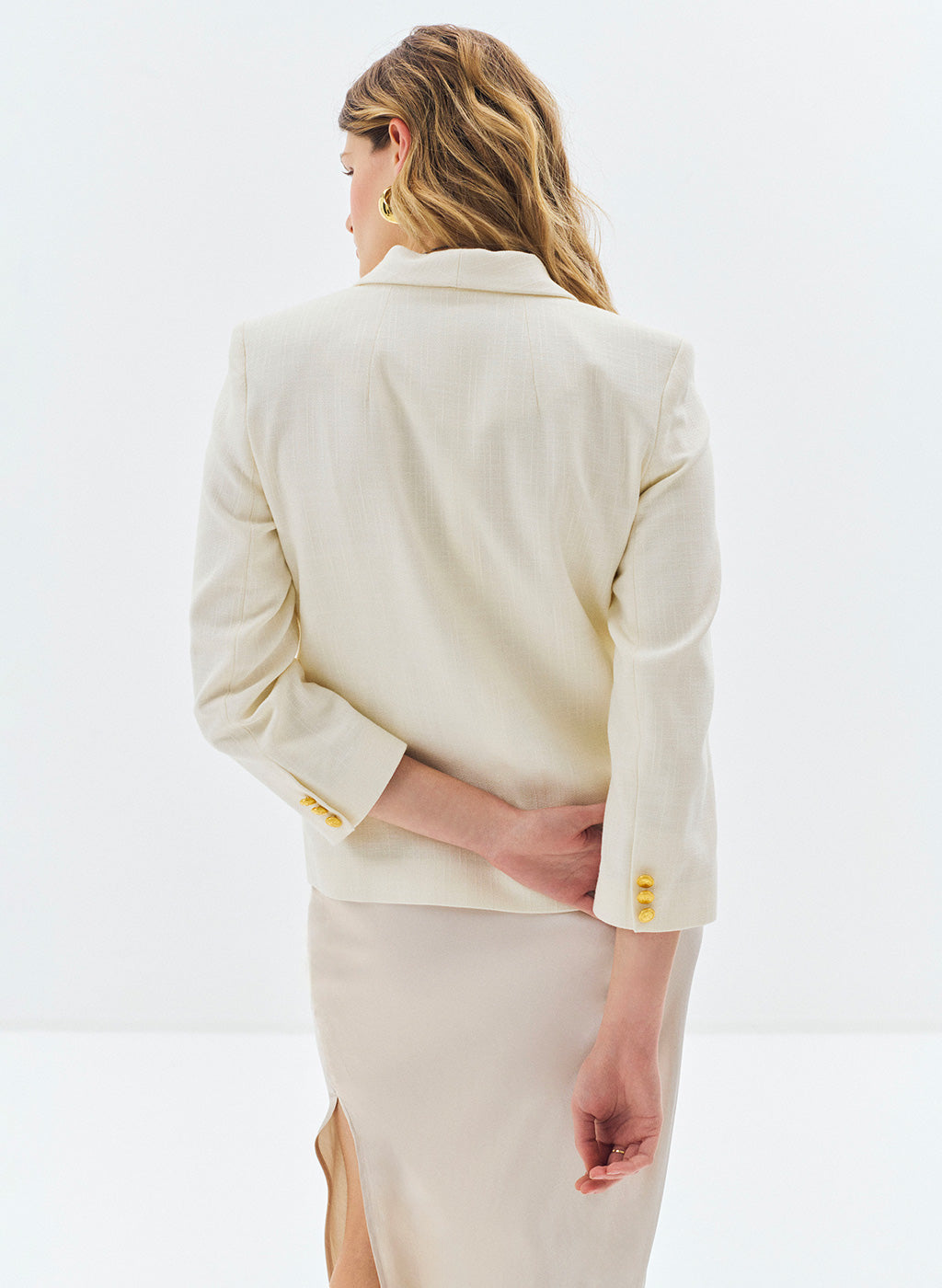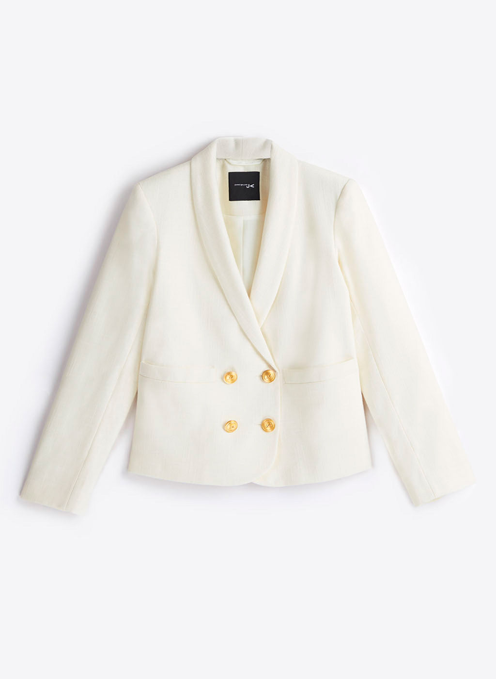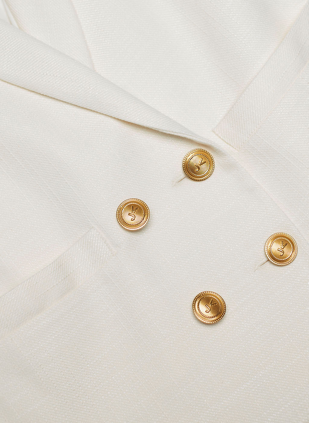 Pourquoi vous l’aimerez : un blazer ivoire intemporel, rehaussé par un double boutonnage doré raffiné.