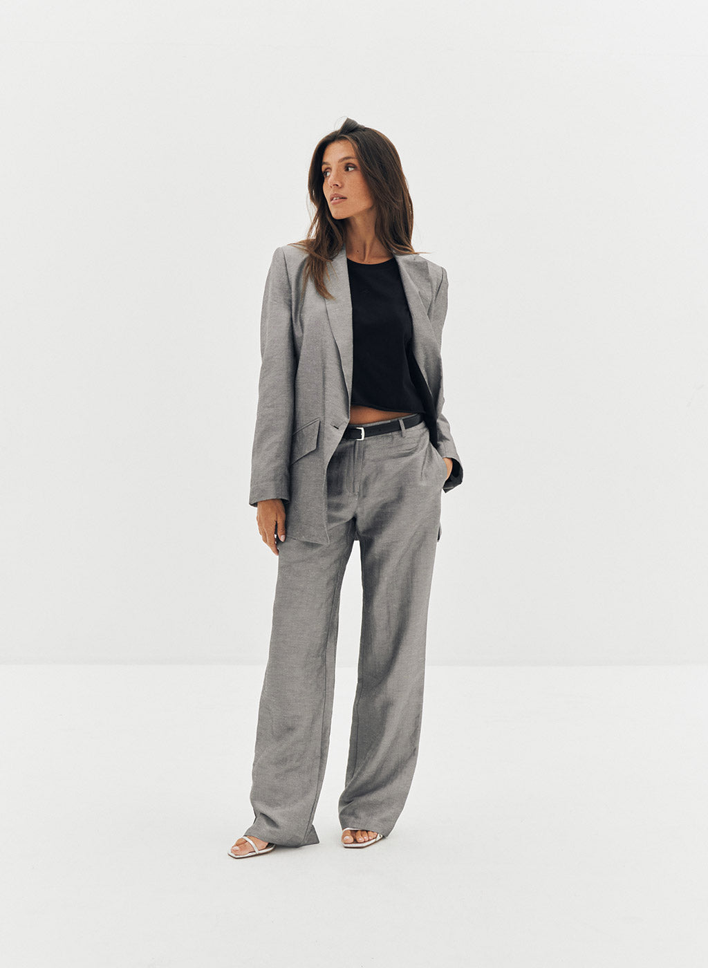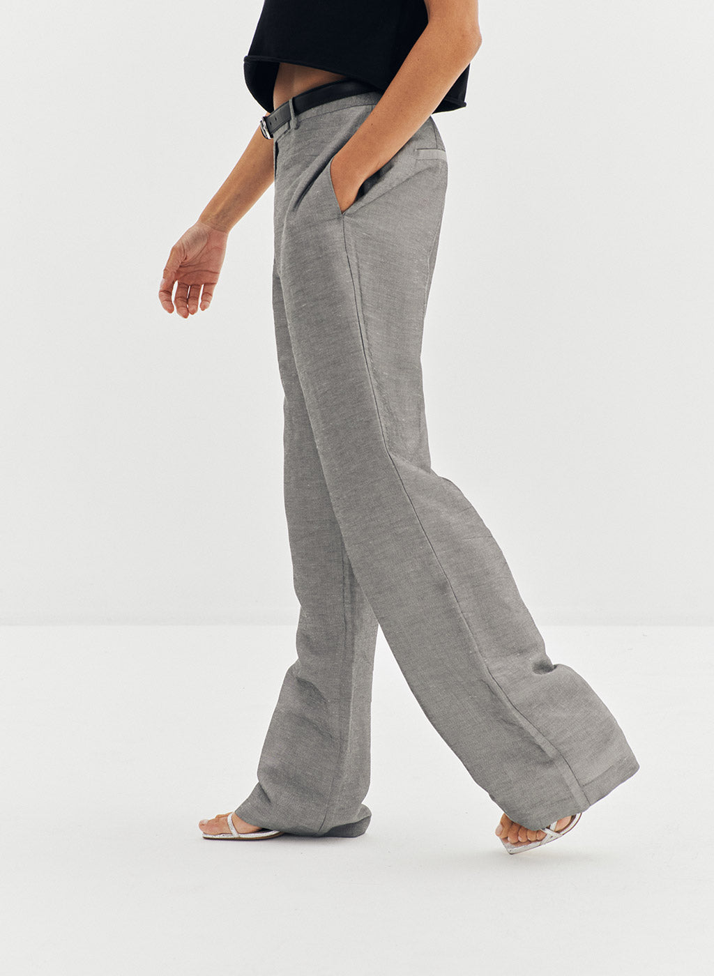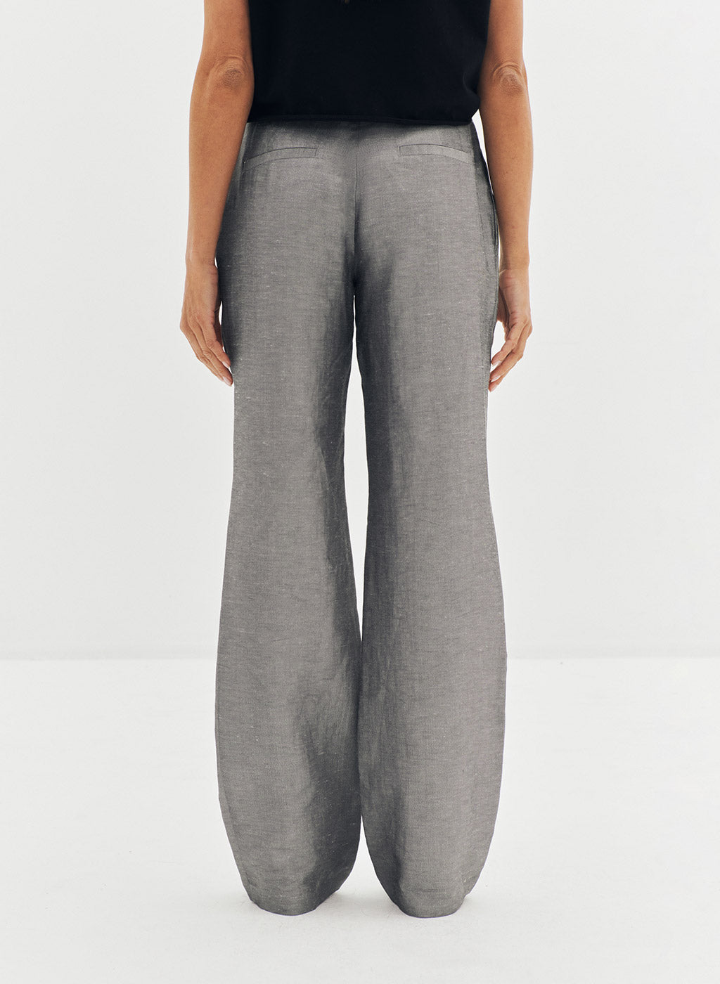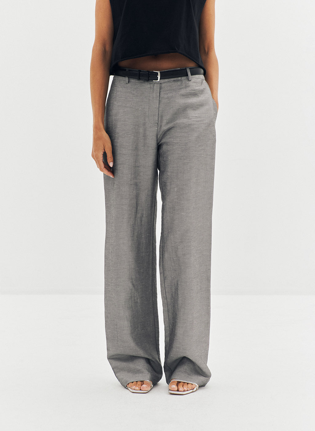 Pantalon Loca gris en lin et lurex