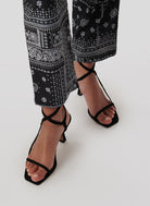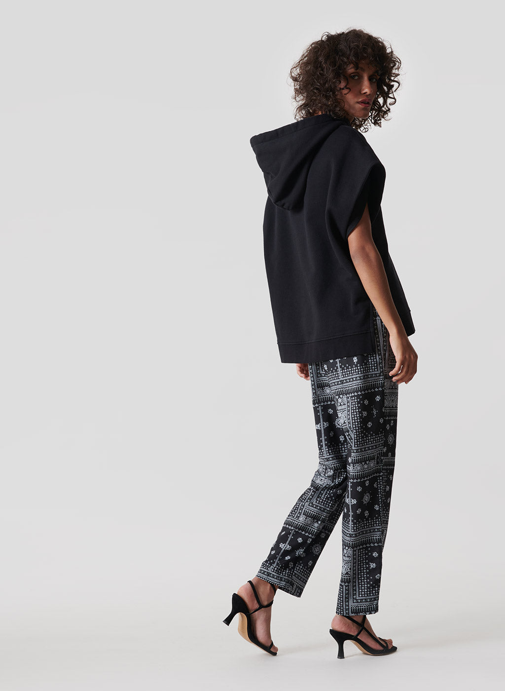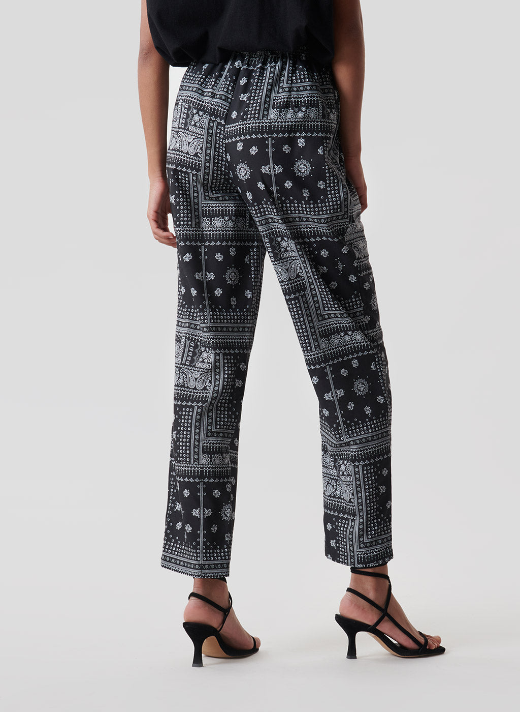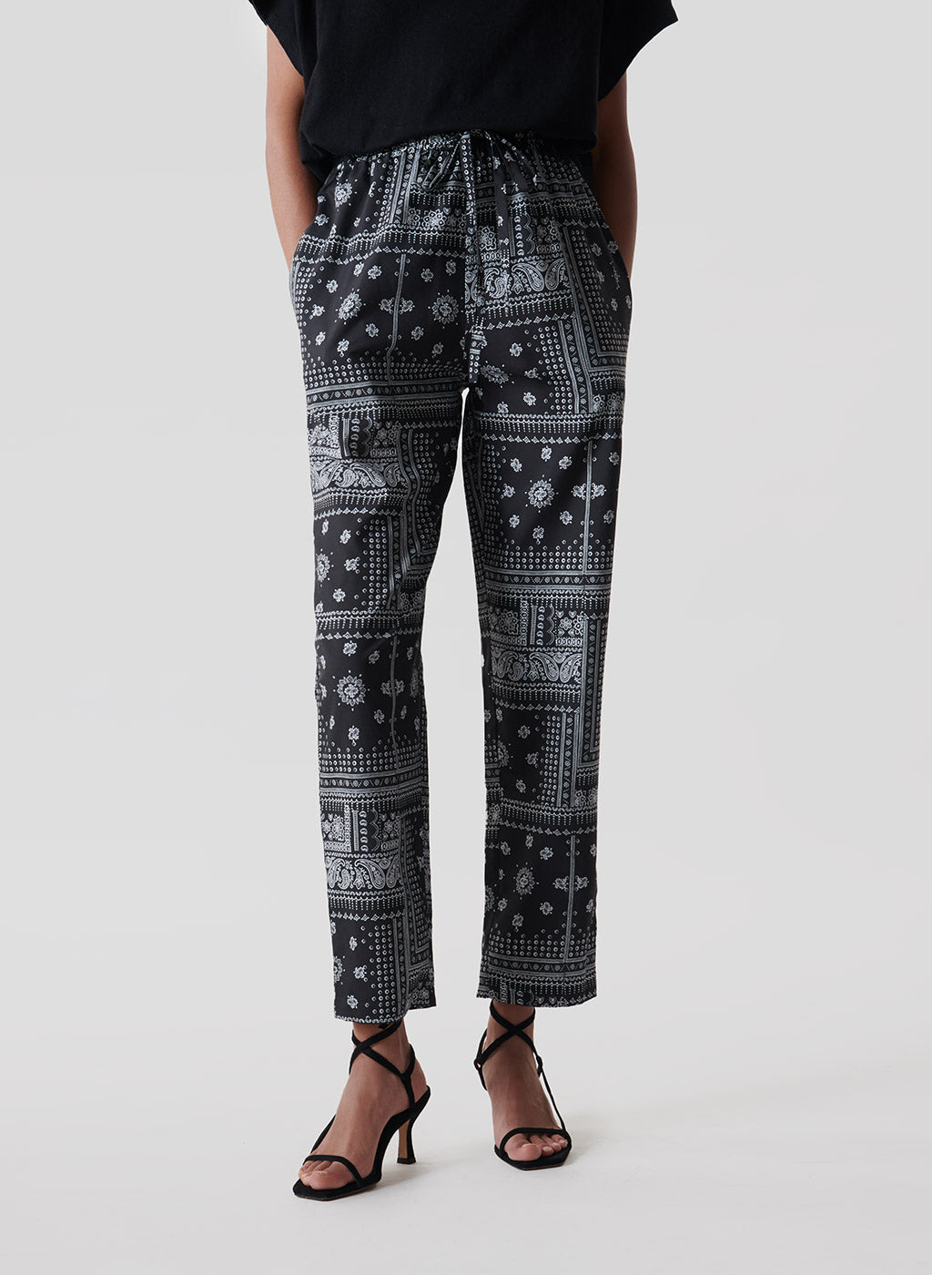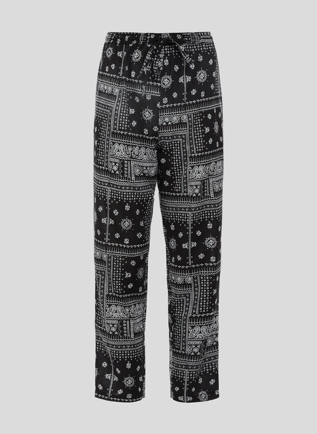 Le pantalon Maha en coton noir et blanc se distingue par son imprimé paisley façon patchwork, inspiré du style bandana pour un look audacieux et tendance. Confectionné dans un tissu souple et confortable, il possède une taille élastiquée avec un lien de serrage ajustable, assurant un maintien parfait tout au long de la journée. Ses deux poches fendues intégrées dans les coutures latérales apportent une touche pratique sans alourdir la silhouette. Pour un style harmonieux, associez le pantalon Maha à sa chemise Malacca pour un total look bandana résolument dans l’air du temps. Vous pouvez également le porter avec un sweat douillet, une chemise fluide ou un tee-shirt blanc basique pour varier les ambiances.