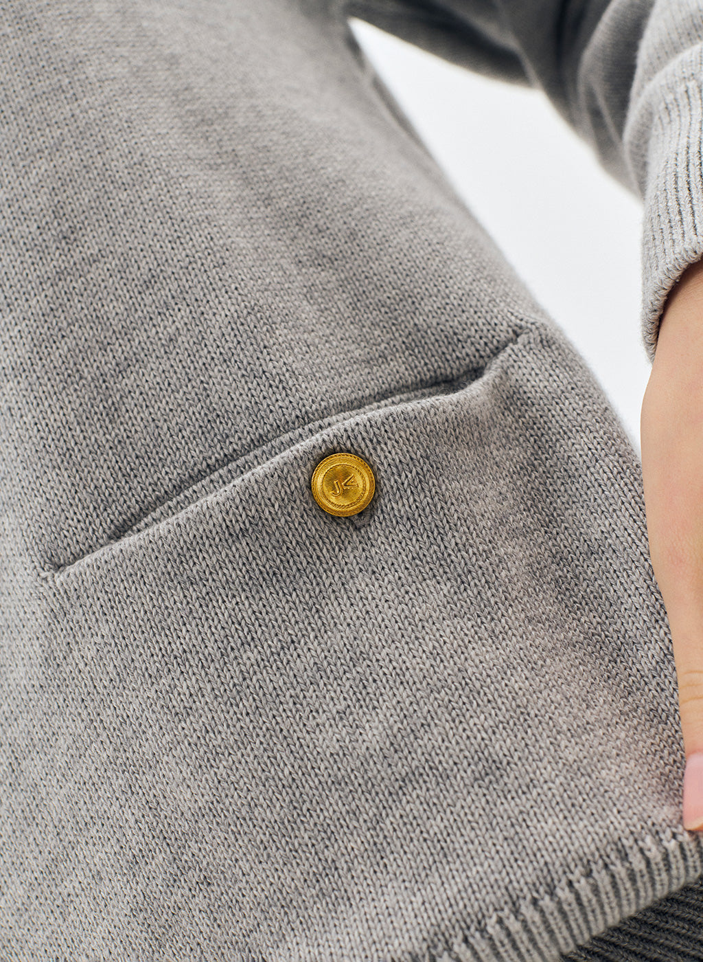 ✔ Deux poches plaquées avec boutons dorés siglés "JV"