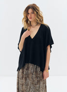 Le top Nata présente une coupe volontairement oversize pour un porté décontracté. Prenez votre taille habituelle.