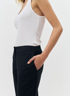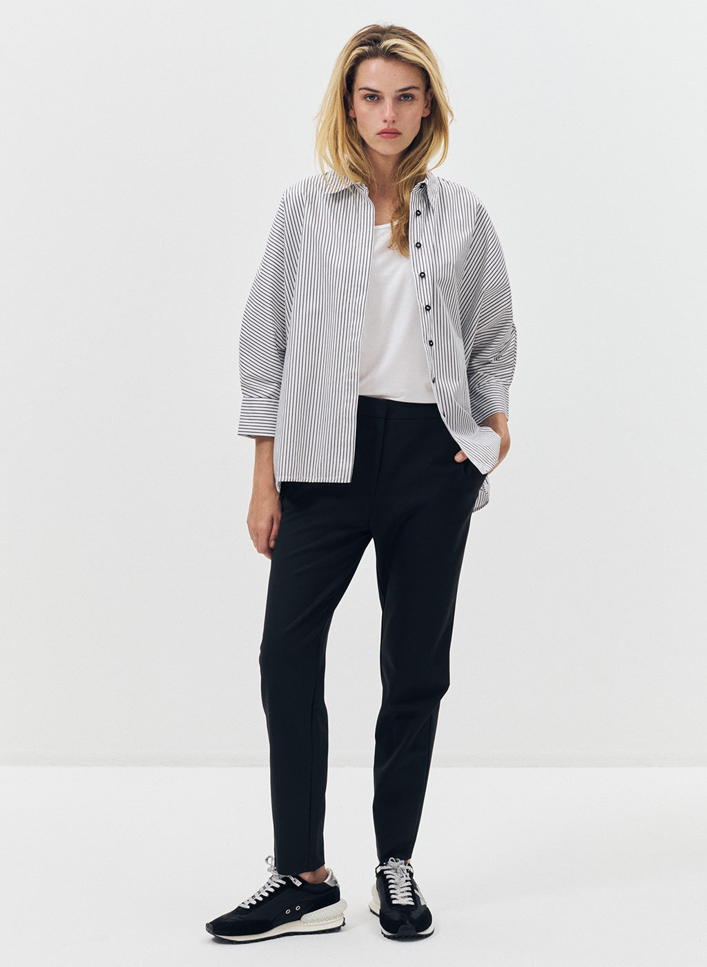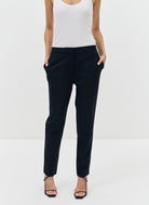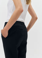 Le pantalon Orel séduit par sa coupe cigarette qui allonge la silhouette. Sa ceinture avec bouton et crochet caché, complétée par une braguette zippée, assure une finition impeccable. Deux poches italiennes à l’avant et deux poches passepoilées avec pinces au dos conjuguent praticité et raffinement. Les jambes fuselées et l’ourlet invisible renforcent l’allure moderne de ce modèle indispensable.