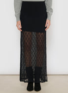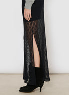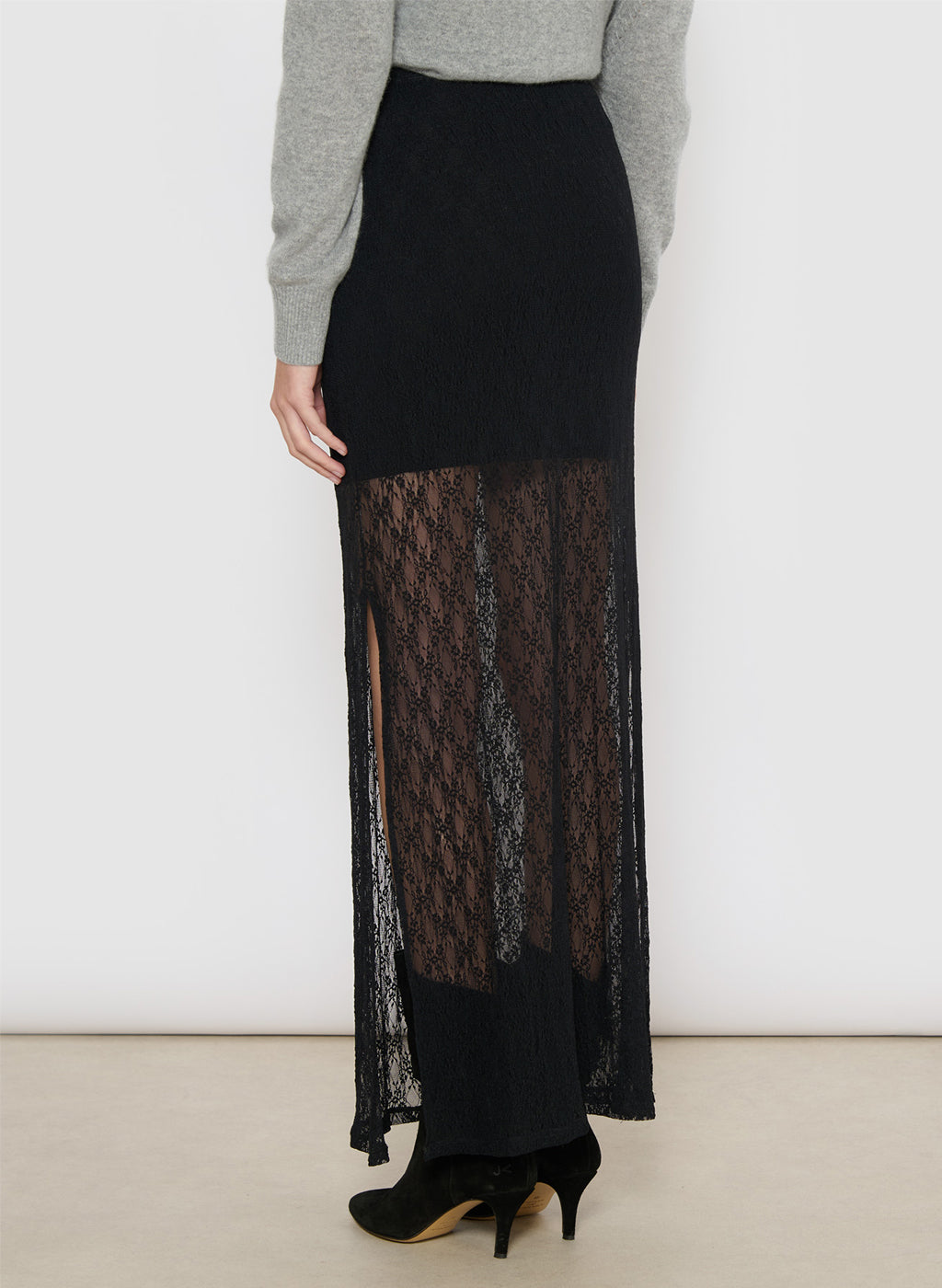 La jupe longue Oreli en dentelle noire incarne une féminité élégante et intemporelle. Sa taille élastiquée offre un confort parfait, tandis que ses fentes latérales dévoilent subtilement la jambe pour une allure à la fois chic et sensuelle. La transparence délicate de la dentelle, associée à une doublure courte, crée un jeu de superpositions raffiné, idéal pour des silhouettes légères et sophistiquées.