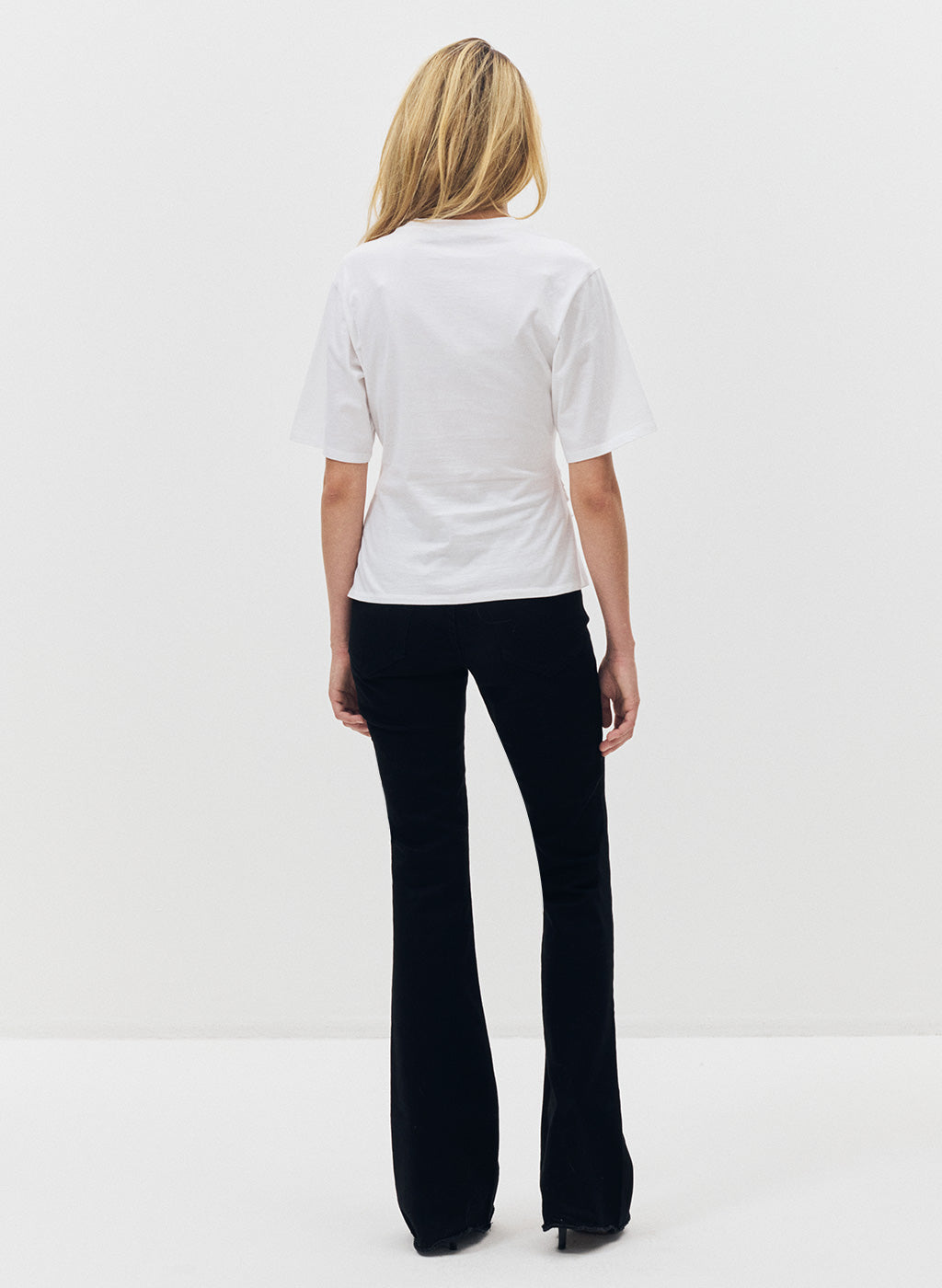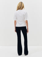 Le t-shirt Oshi, confectionné en jersey de coton organique doux et respirant, offre un tombé fluide mais structuré qui épouse délicatement la silhouette. Sa coupe ajustée à la taille met en valeur la ligne du corps, tandis que l’ourlet asymétrique, détail signature, apporte une note moderne et sophistiquée.