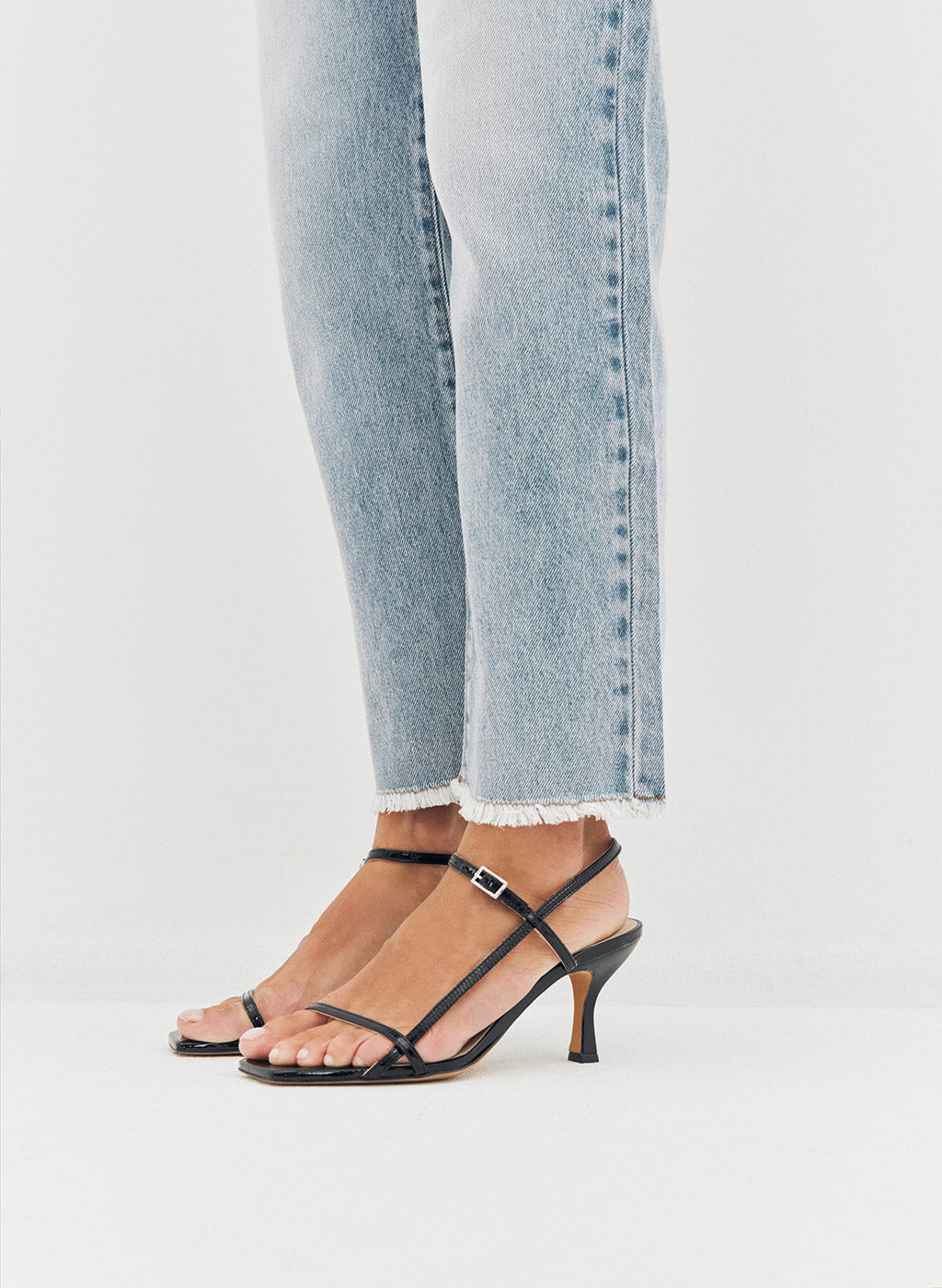 Les sandales Sublim allient stabilité et féminité. Leur fine bride en cuir verni noir apporte un côté chic et intemporel à la silhouette. Le talon bobine, soigneusement conçu, ainsi que sa hauteur idéale, garantissent un maintien parfait tout en offrant un confort optimal pour vos pieds tout au long de la journée. Une pièce élégante et versatile qui s’adapte à toutes vos tenues, du jour au soir, pour un style à la fois raffiné et moderne. Prenez votre taille habituelle. Si vous êtes entre deux tailles, optez pour la taille supérieure. Designées dans le sud de la France. Fabriquées au Portugal, cuir sourcé en Italie.