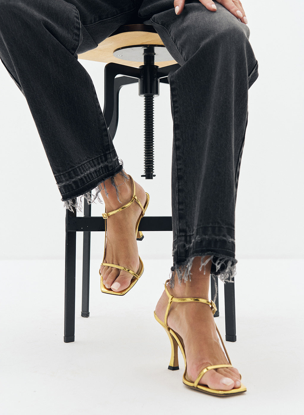 Sandales Sublim 90 en cuir miroir doré à bride simple